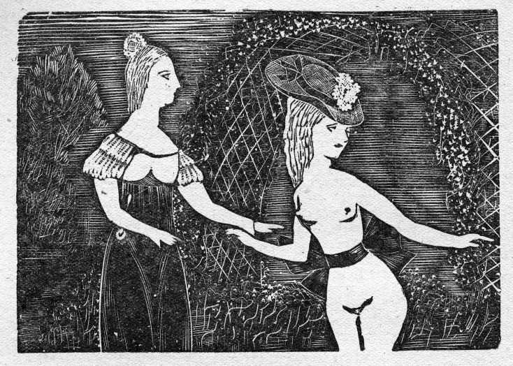 Most people who have heard of Tsuguharu Foujita will know him for his famous cat etchings; his 1930 Book of Cats with its twenty large engravings can sell for more than £50,000. You can find a copy of his Les aventures du Roi Pausole, on the other hand, for around £20. He is slightly less well known, though he was notorious at the time, for attracting beautiful women; he was married three times and had a string of lovers; it is said that his attention to personal cleanliness and associated large bathtub with constant hot water was a key factor in his success.