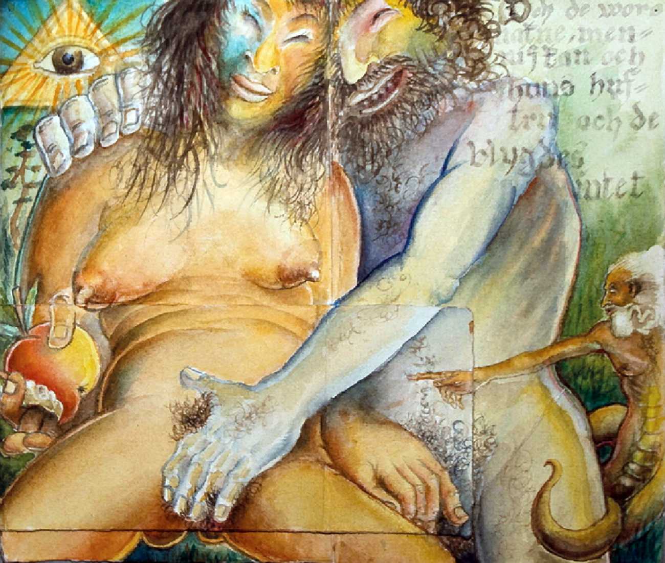The Swedish artist Jarl Ulf Rahmberg grew up in Borås in southern Sweden. He studied decorative art in Stockholm at the Högre Konstindustriella Skolan (Higher School of Art and Design, now renamed Konstfack) from 1952 to 1957, and the Kungliga Konsthögskolan (Academy of the Arts) from 1962 to 1967; he also made several study trips to the Netherlands, Italy and Spain. He first exhibited in Köping in 1959 and has since participated in a large number of individual and group exhibitions. In 2012 a major retrospective, ‘Lustarnas trädgård och civilisationens nedräkning’ (The Garden of Lust and the Countdown of Civilisation), was held at Borås Art Museum.