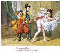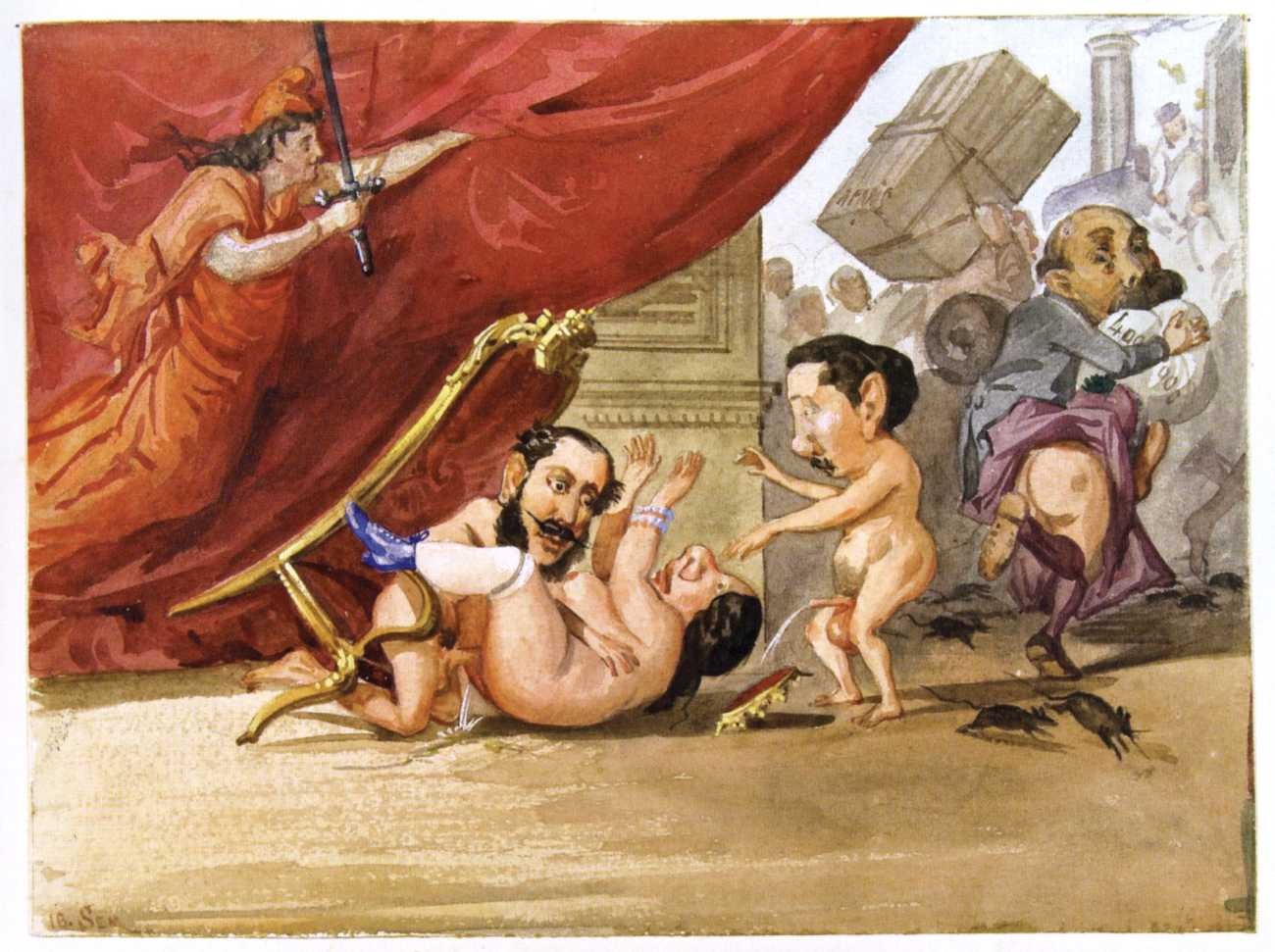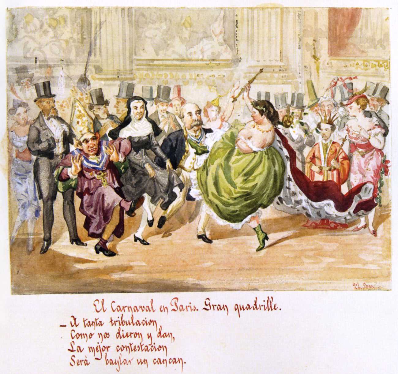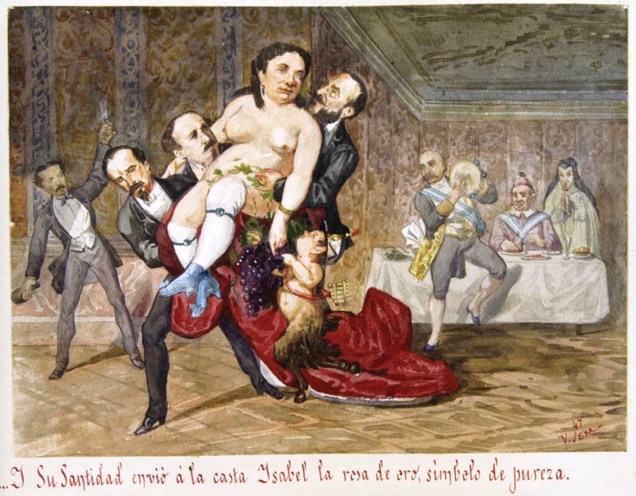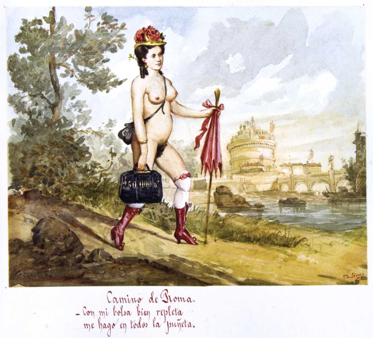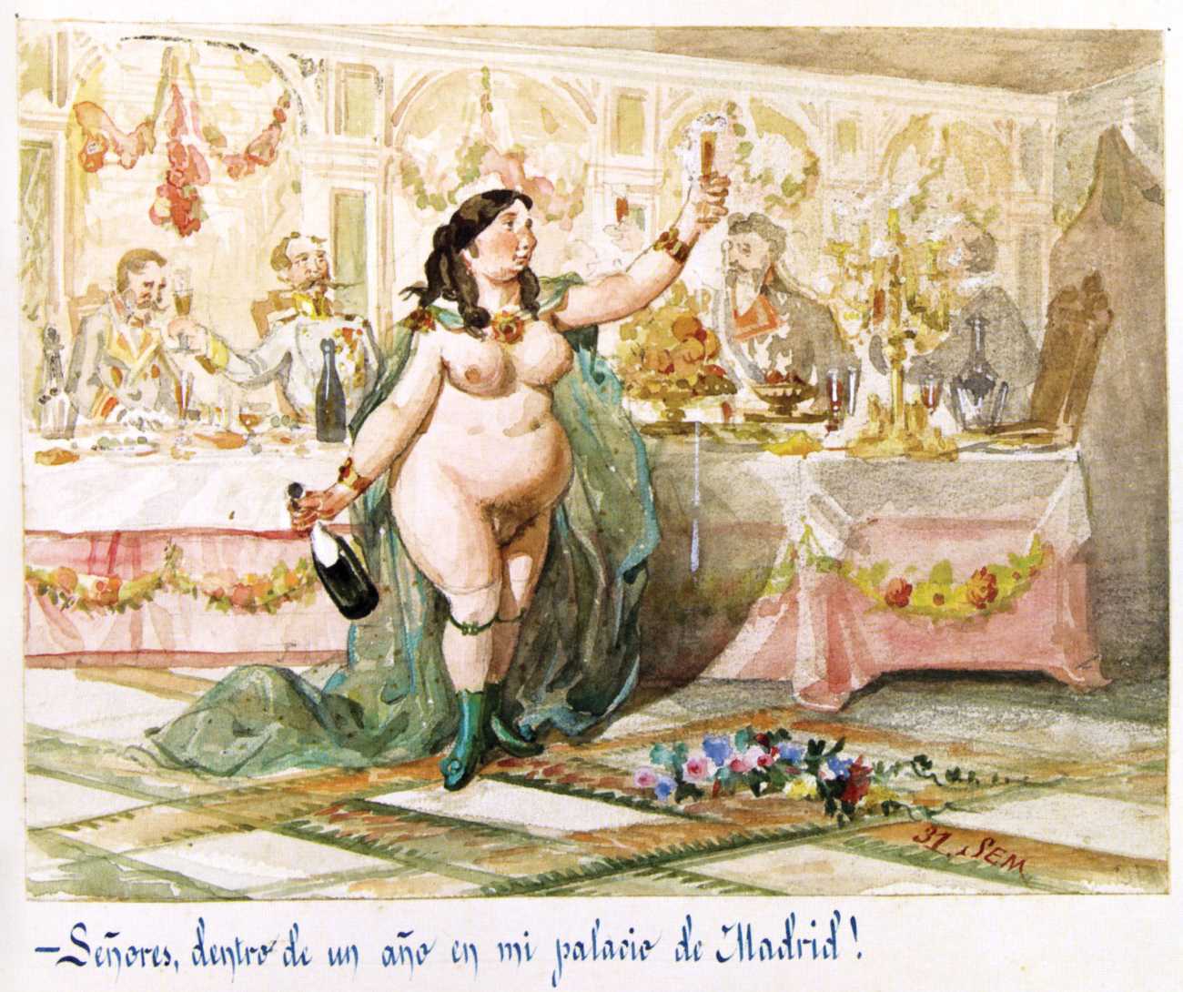 Valeriano’s brief marriage to the daughter of an Irish seaman failed in 1862 after producing two children, and he followed his brother to Madrid. In 1865 he received a government commission to paint scenes of festivals, costumes and customs from the various Spanish regions, which resulted in several years of travelling. The project was left unfinished, however, when the Glorious Revolution resulted in the grant for his commission being withdrawn. To supplement his income he worked as a cartoonist and illustrator for several publications, including La Ilustración Española y Americana and El Museo Universal, often in conjunction with Gustavo.