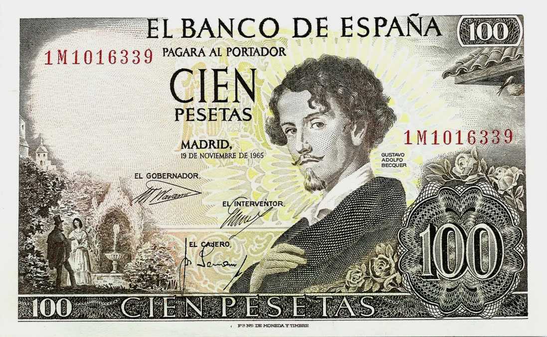 Valeriano died of liver disease in Madrid, aged just 36, three months before his brother. Valeriano’s portrait of Gustavo was used on the one hundred peseta Spanish banknote from 1965 to 1970, and was the model for a memorial bust in Madrid’s Maria Luisa Park.