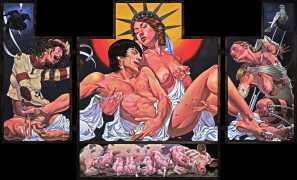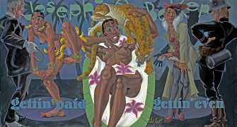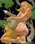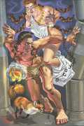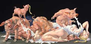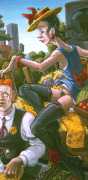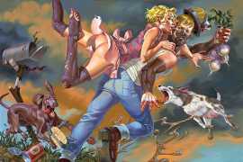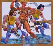 Gradually shifting his focus to fine art, he began to create heroic figurative works featuring religious, folk, pop culture, and mythical heroes. His Olive Oyl series, based on cartoon sailor Popeye’s headstrong girlfriend, captured much attention as he documented her imagined life as a waterfront floozy.