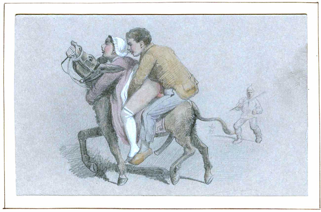 He continued to exhibit until 1838, but disappeared from public view until 1846, when he started to exhibit lithographs, dedicating himself to the medium from then on. He produced a lithographic album of Paris views, and several sets of military characters.