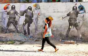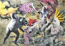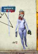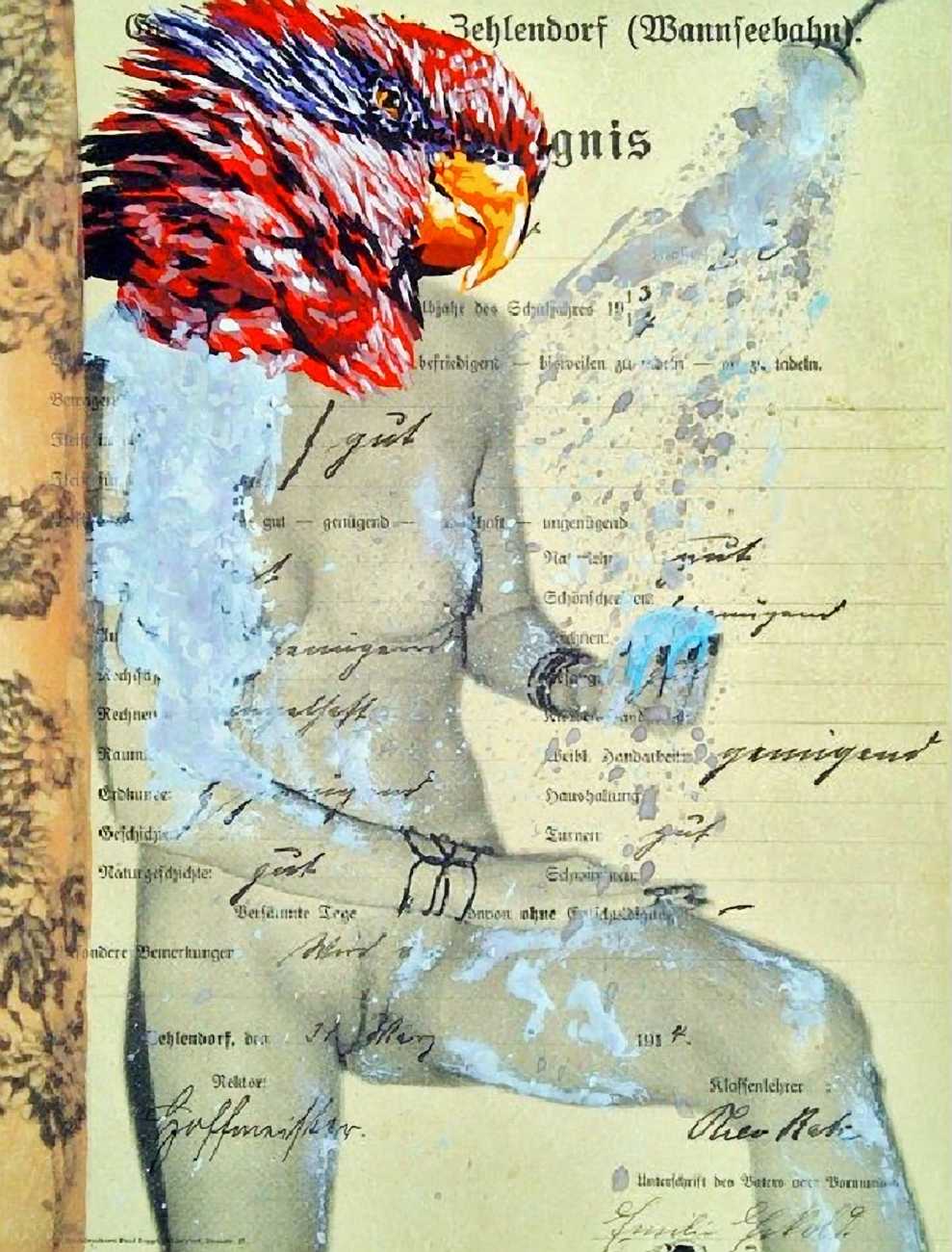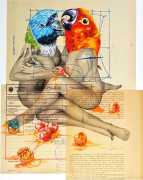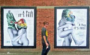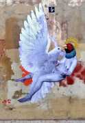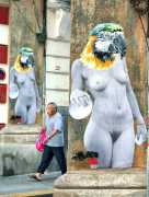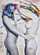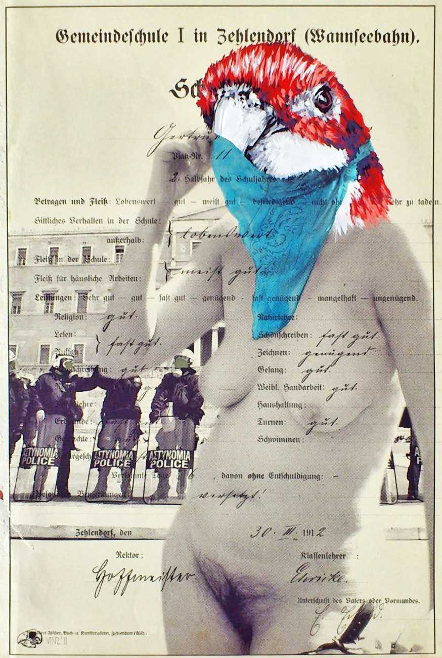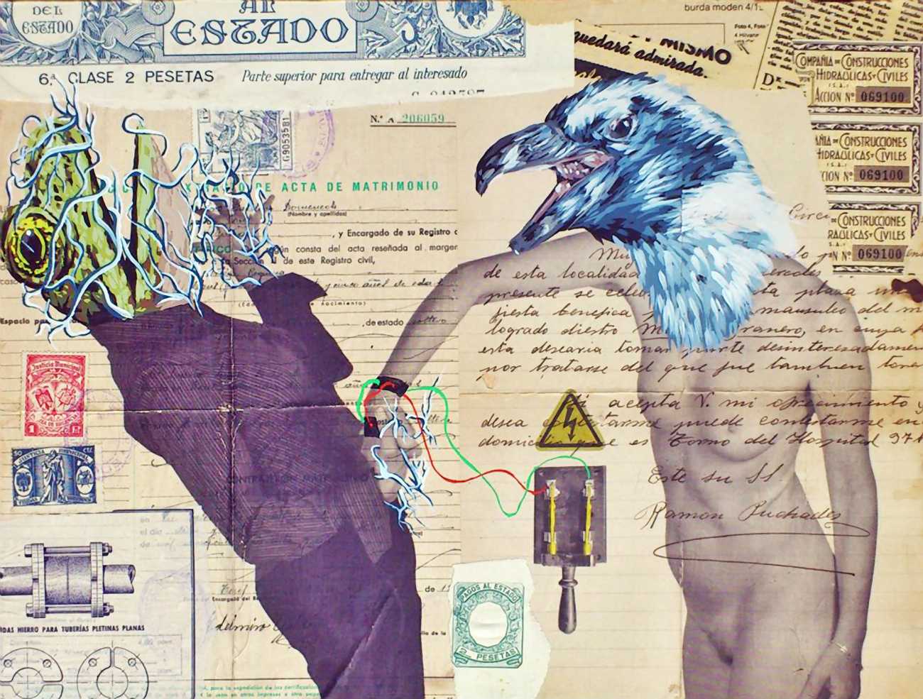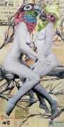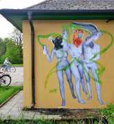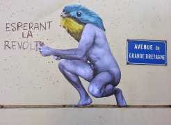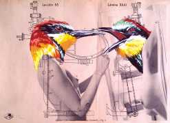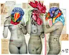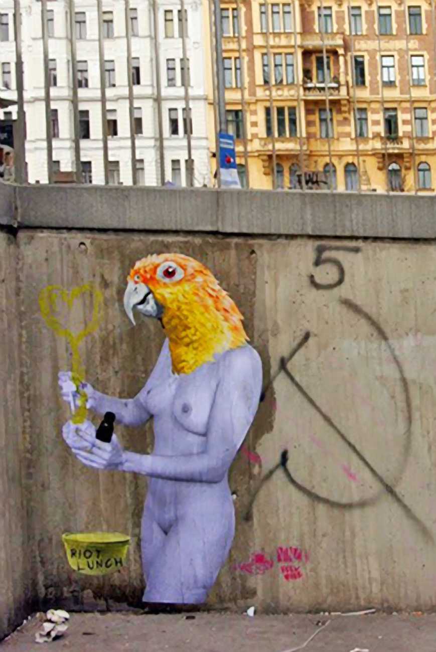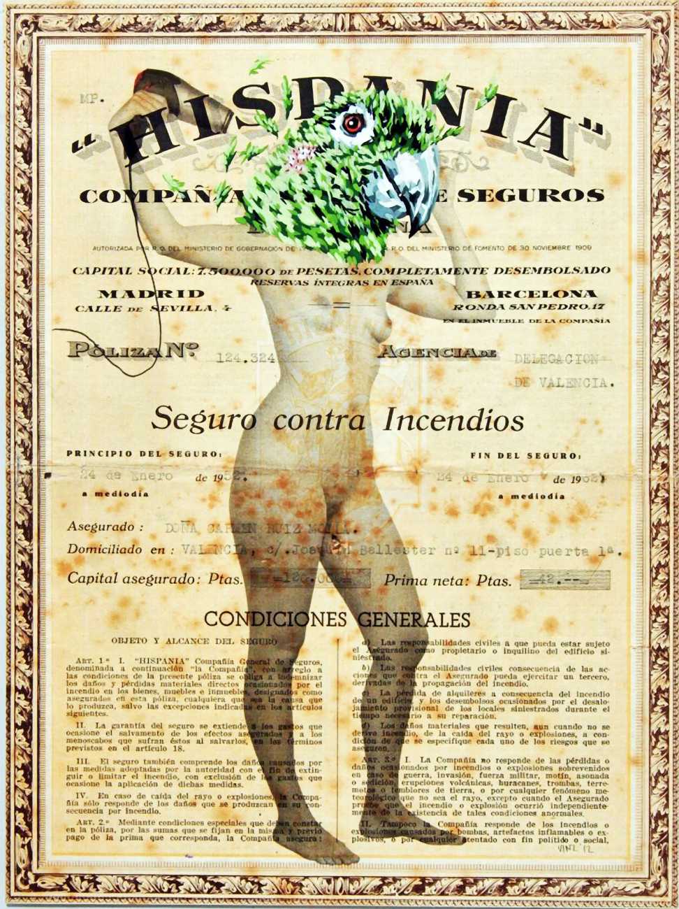 During the 5th Valencis Incubarte Festival in 2012 he created the wall art entitled No tú tú teme (Don't Be Afraid) in the neighbourhood of El Carmen de Valencia, showing three riot police officers deploying their batons against three women with naked bodies and birds’ heads. He created it partly as a tribute to the wives of miners from Asturias, León and Teruel who had begun a march towards Madrid in support of workers’ rights. When the mural was painted over, apparently by police officers, leaving the naked figures but eliminating the police figures, it generated a controversy in the media that reached the Congress of Deputies. In 2020 the complete restored work was acquired and incorporated into the Contemporary Art Collection of the Generalitat Valenciana. Since then murals by Vinz have been integrated into the French Institute of Valencia (La Marca €spaña, 2013) , the Circular Room of the Valencia City Council (Nosaltres el Poble, 2015), the Valencia Museum of Illustration and Modernity MUVIM (Gràcies!, 2020), and the Saló de Corts of the Palace of the Valencian Government in 2021.