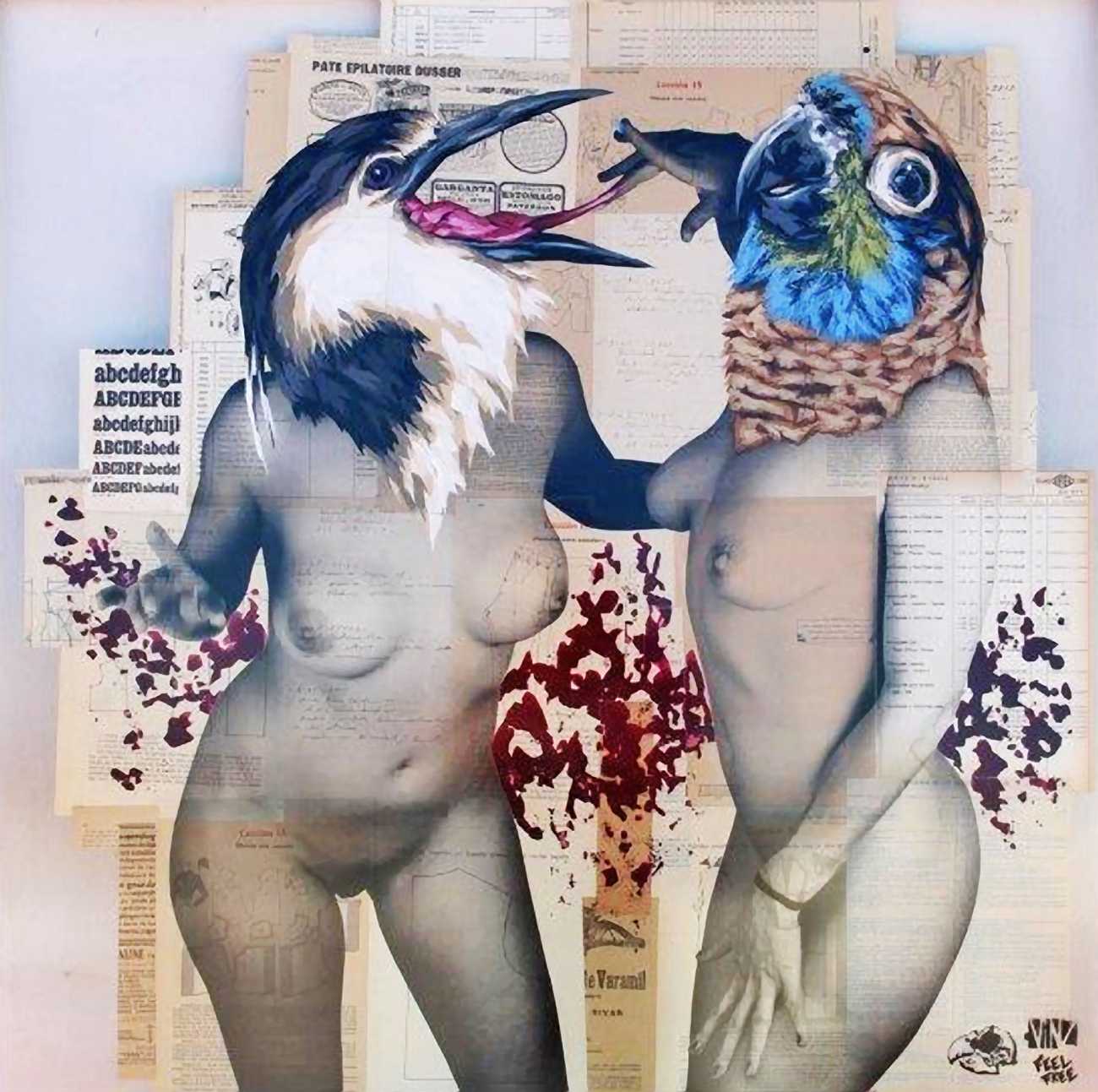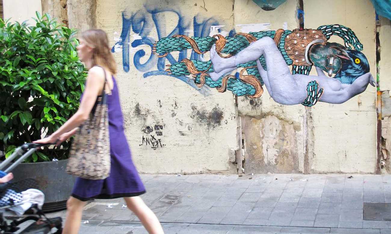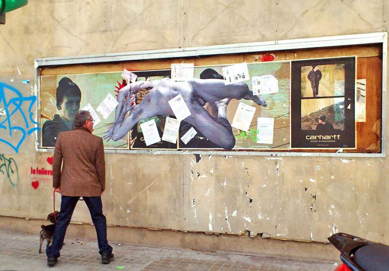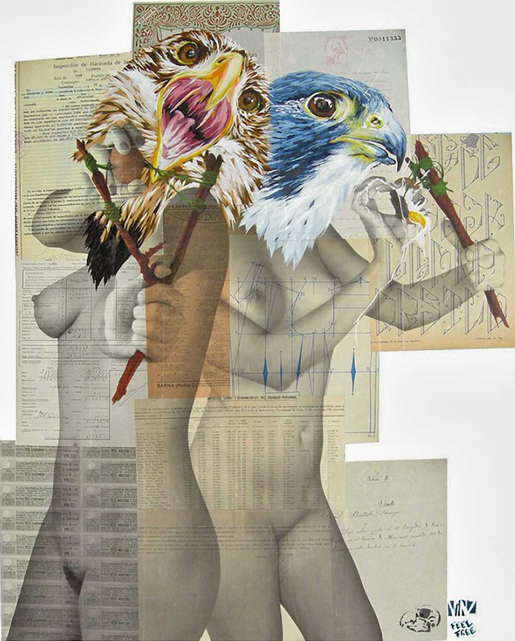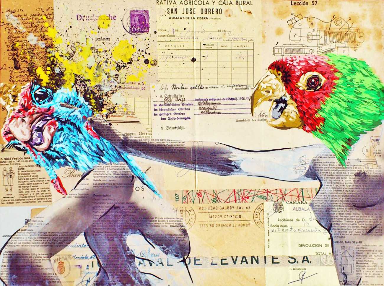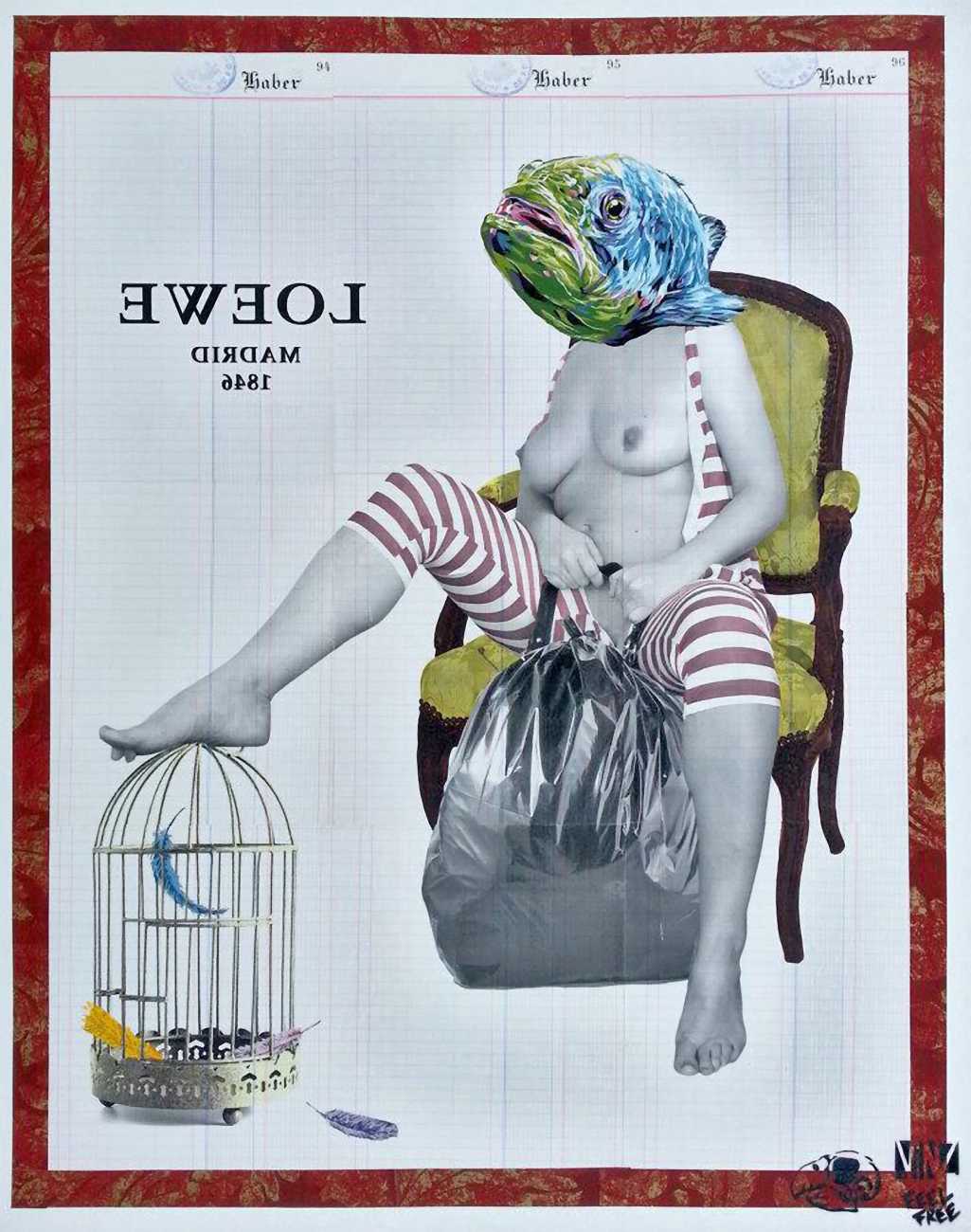 The artist who goes simply by the name of Vinz grew up, studied, and still works in the Spanish city of Valencia, one of the world’s hotspots of urban art. He graduated from the Faculty of Fine Arts of San Carlos Polytechnic University in 2003, and quickly gained a name for himself with large canvases combining collage, stencil work and painting. Influenced by street artists like Banksy and Miss Van, Vinz found a new arena for his work by starting to create large-scale outdoor works, to begin with in the streets of Valencia but more recently in other cities in Europe and North America.