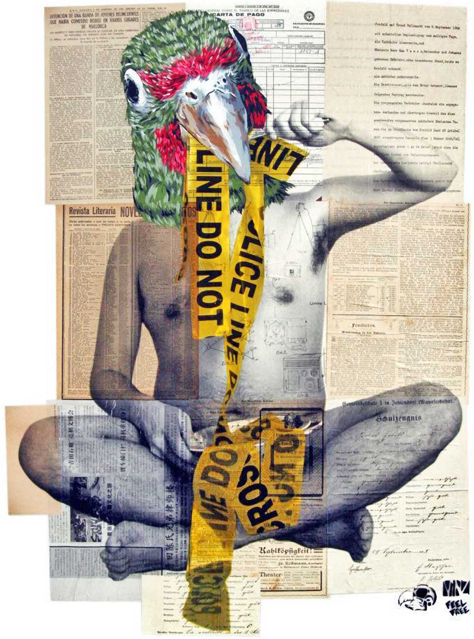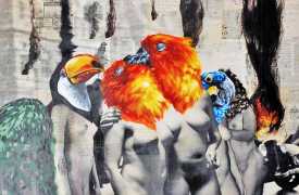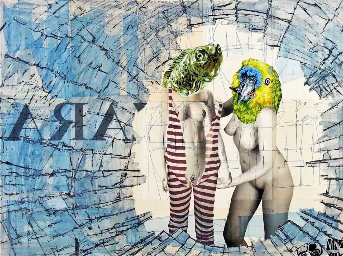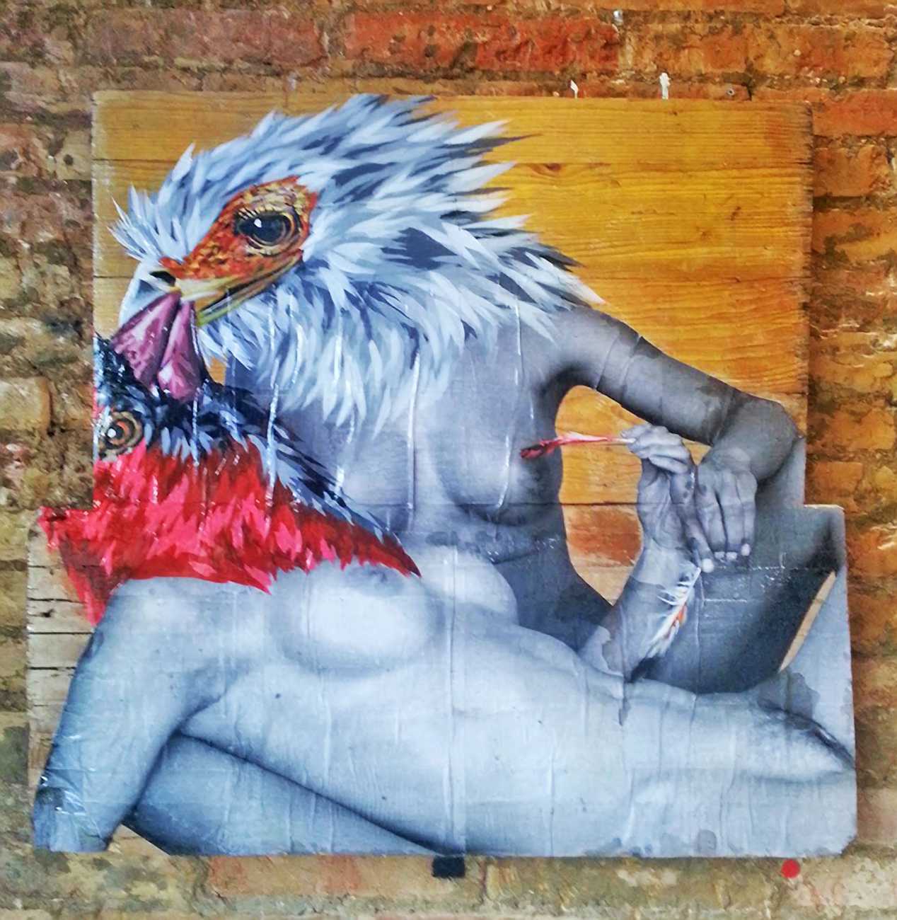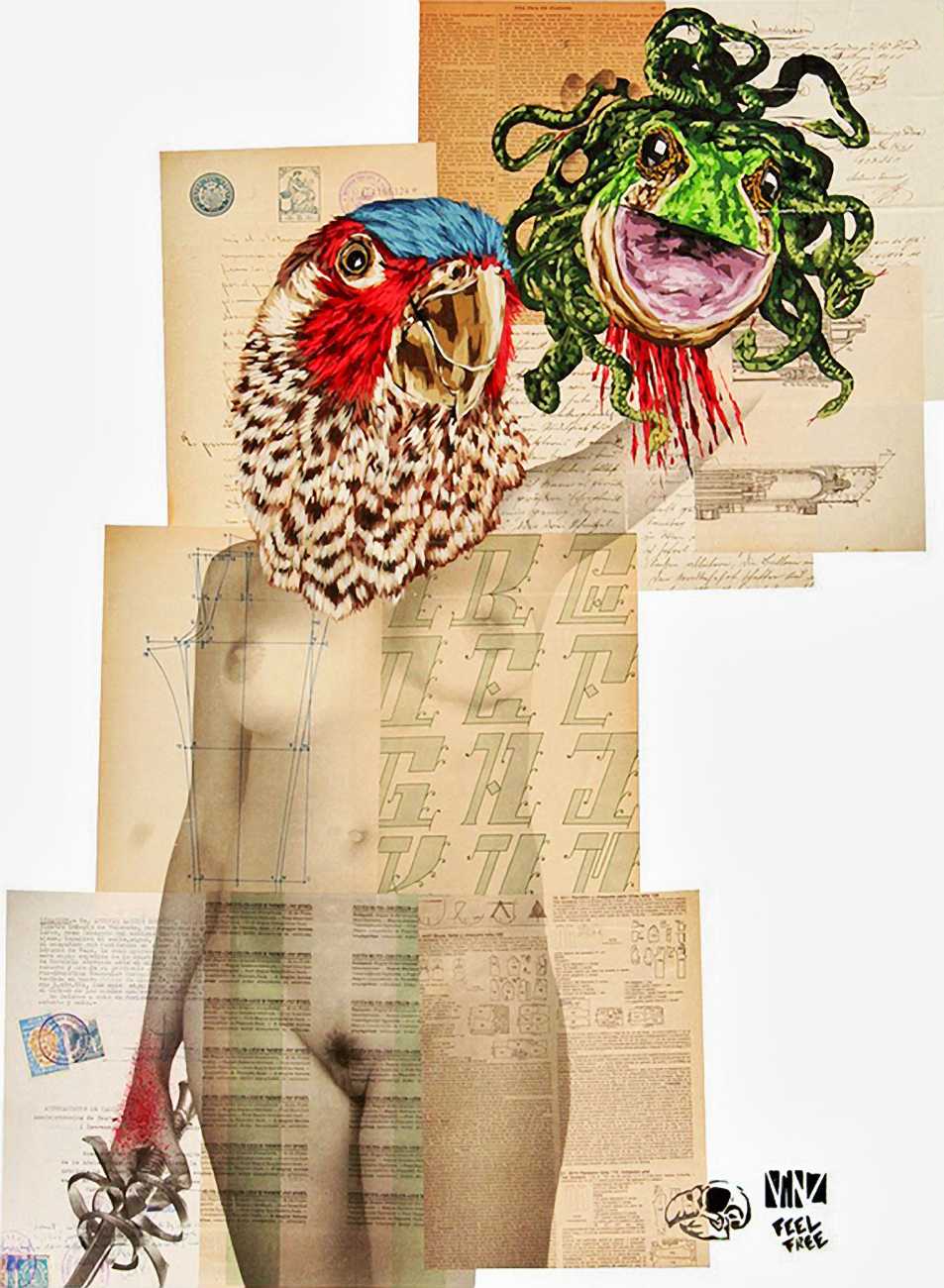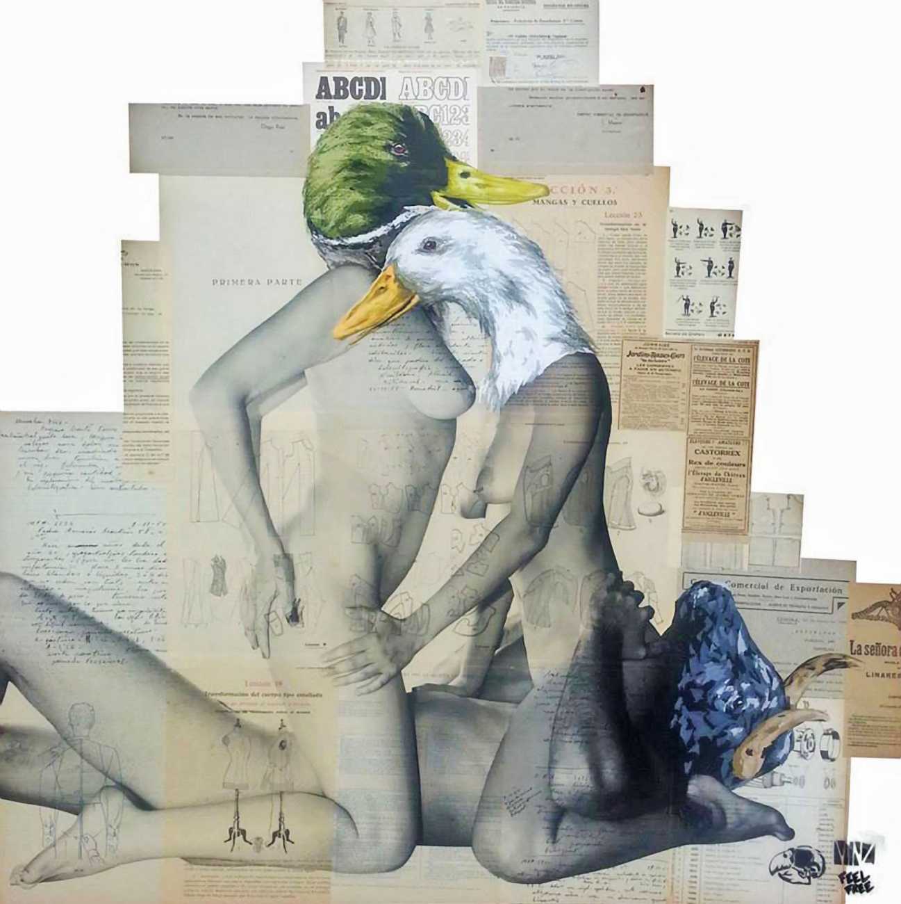 The artist who goes simply by the name of Vinz grew up, studied, and still works in the Spanish city of Valencia, one of the world’s hotspots of urban art. He graduated from the Faculty of Fine Arts of San Carlos Polytechnic University in 2003, and quickly gained a name for himself with large canvases combining collage, stencil work and painting. Influenced by street artists like Banksy and Miss Van, Vinz found a new arena for his work by starting to create large-scale outdoor works, to begin with in the streets of Valencia but more recently in other cities in Europe and North America.