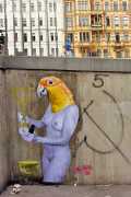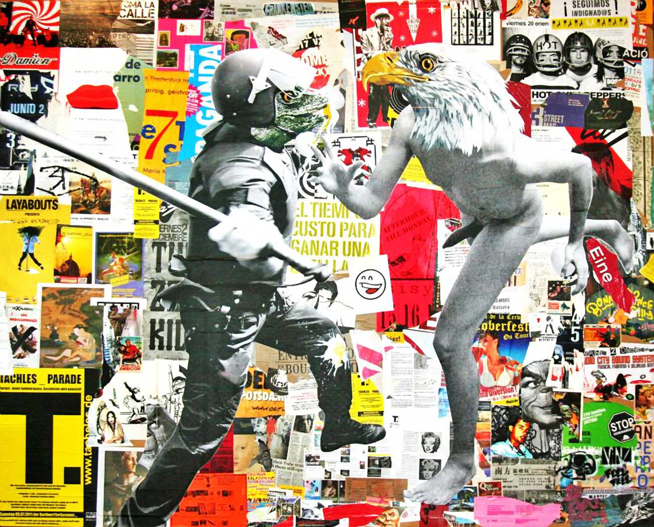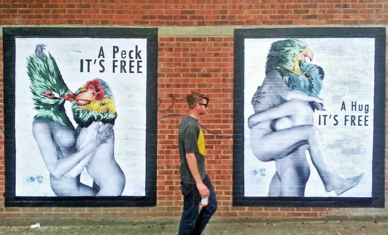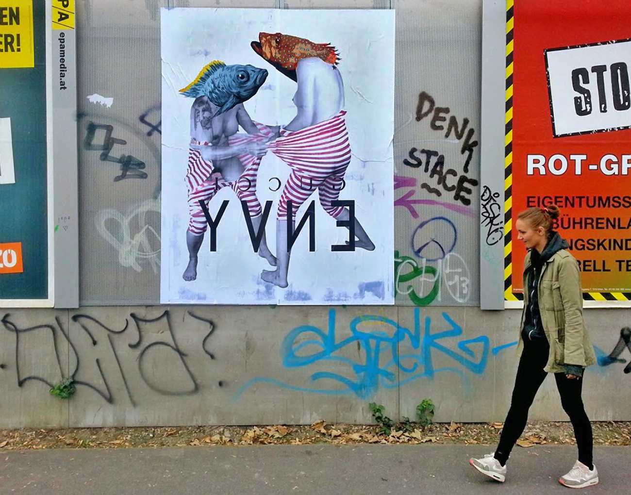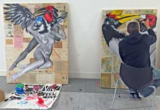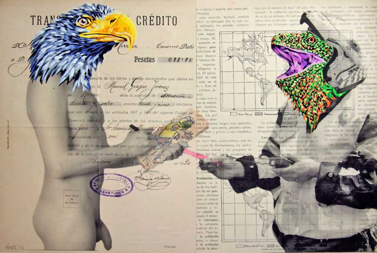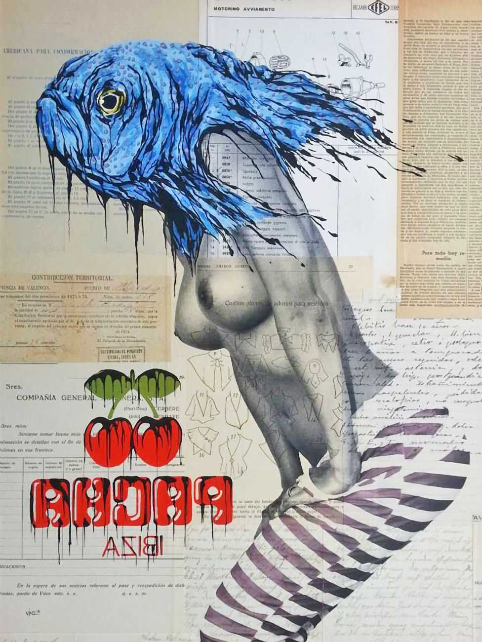 The artist who goes simply by the name of Vinz grew up, studied, and still works in the Spanish city of Valencia, one of the world’s hotspots of urban art. He graduated from the Faculty of Fine Arts of San Carlos Polytechnic University in 2003, and quickly gained a name for himself with large canvases combining collage, stencil work and painting. Influenced by street artists like Banksy and Miss Van, Vinz found a new arena for his work by starting to create large-scale outdoor works, to begin with in the streets of Valencia but more recently in other cities in Europe and North America.