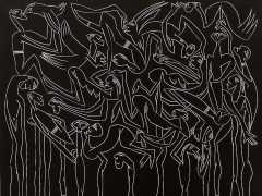 Throughout his prolific career Walter Battiss worked with a range of media – painting, printmaking, calligraphy, and writing – and exhibited widely both locally and internationally. He was awarded numerous honours, including the South African Akademie’s Medal of Honour for painting in 1965.