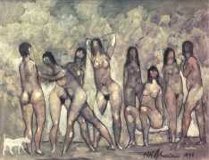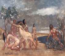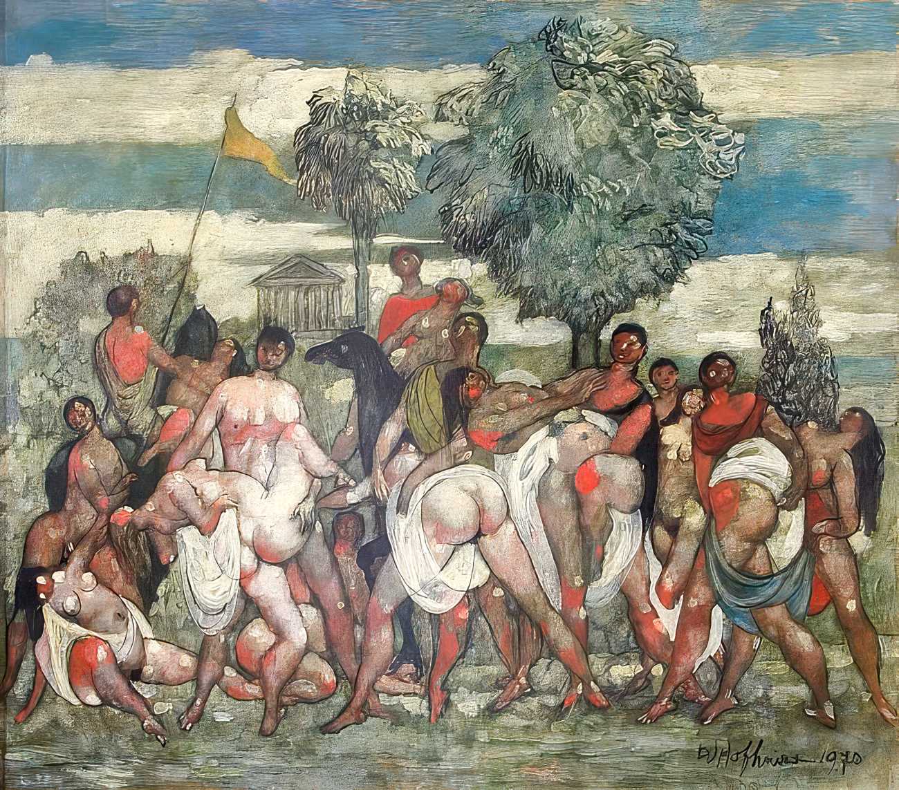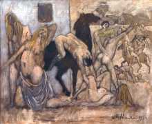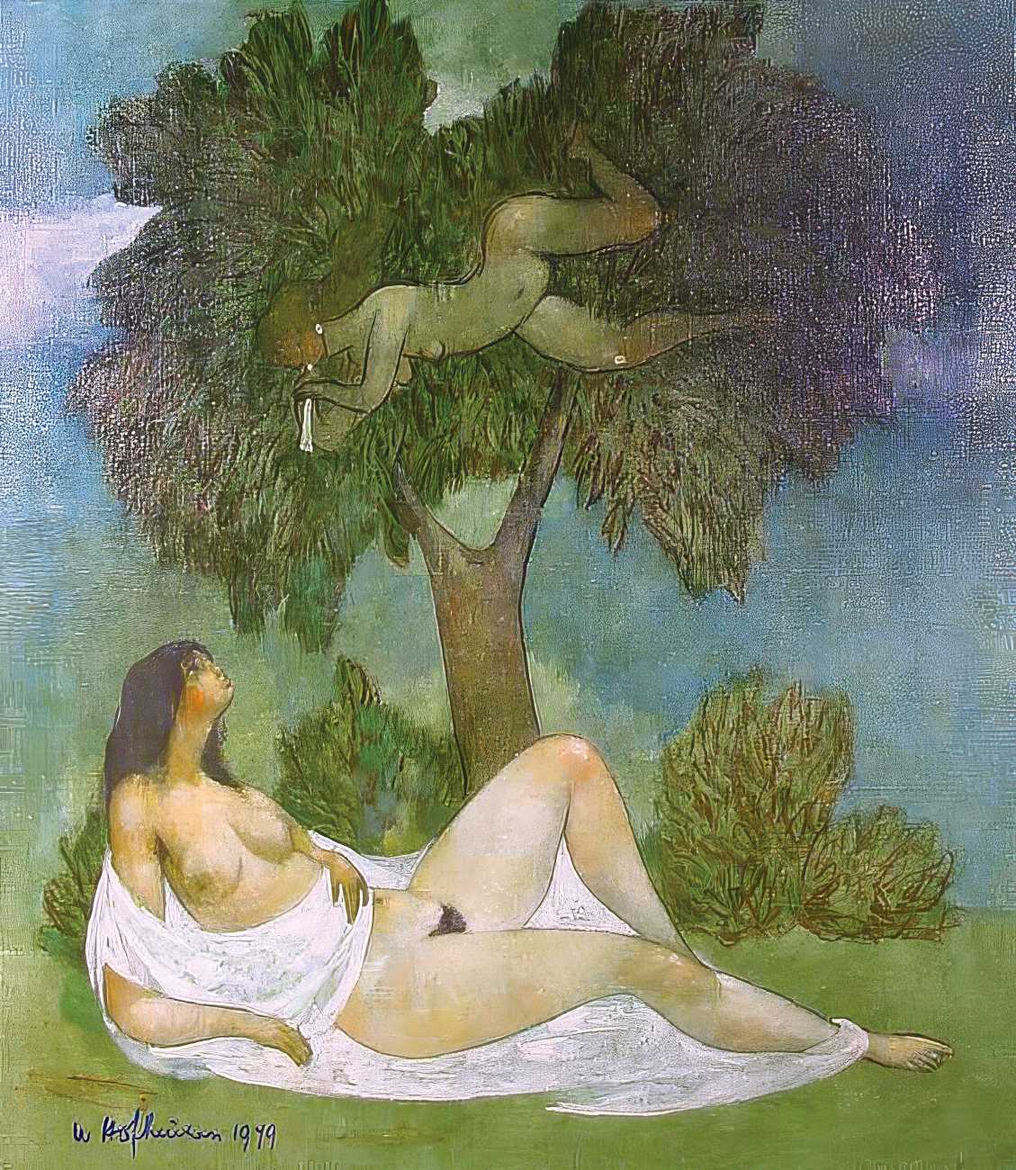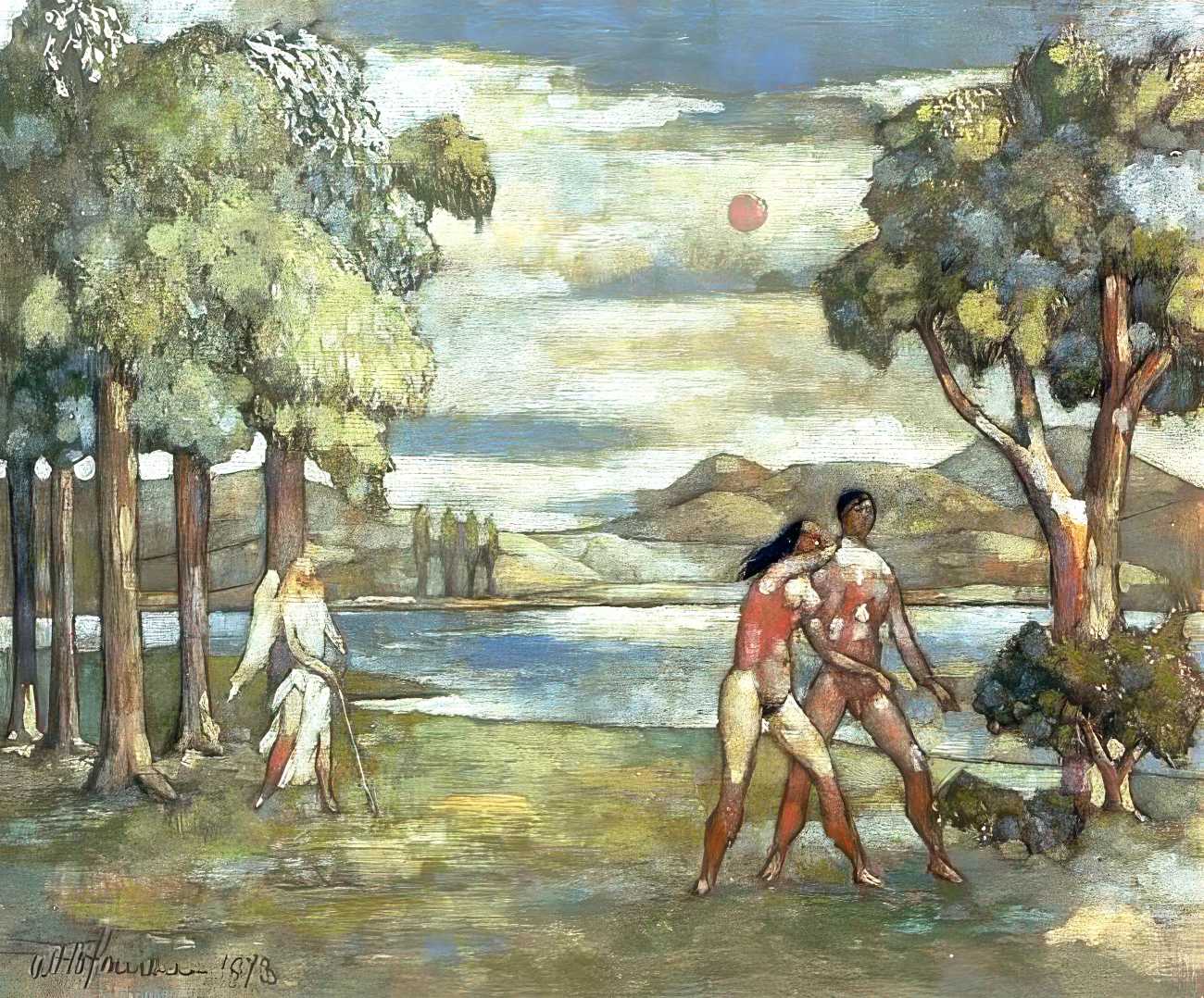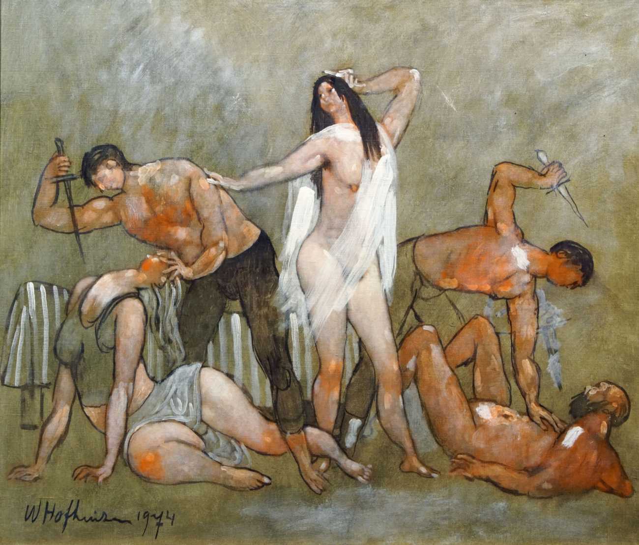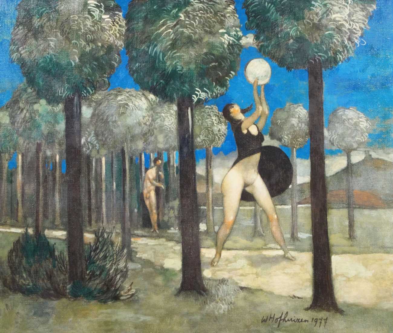 The Dutch painter Wilhelmus Johannes Maria (Willem) Hofhuizen was born in Amsterdam, but a few years later his parents moved to Roermond, where Willem spent his childhood at the Kapellerlaan. In 1931 he went to Nijmegen, then back to Amsterdam to study at the teachers’ training college and later at the State Academy for the Visual Arts, under Johannes Hendricus Jurres and Heinrich Campendonk. His fellow students at the Academy included Jaap Min and Karel Appel, and Jos Hagemeijer (1920–91), whom he would later marry and who was a talented artist in her own right.