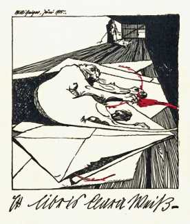 In the early years of his artistic career he concentrated on etching, especially bookplates incorporating his trademark spiky calligraphy. He created several portfolios of lithographs and etchings, including Seele (Soul) in 1903 and Liebe (Love) in 1905, for which he was awarded the Graf Schack scholarship of the Munich Academy. He used the prize money to travel to Rome and Naples, Tunisia, Madrid, and Paris, where he met Auguste Rodin. While in Rome he created the twelve provocative and sexually explicit plates for Das gemeinsame Ziel (The Common Goal).