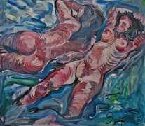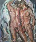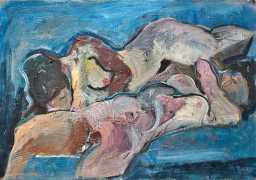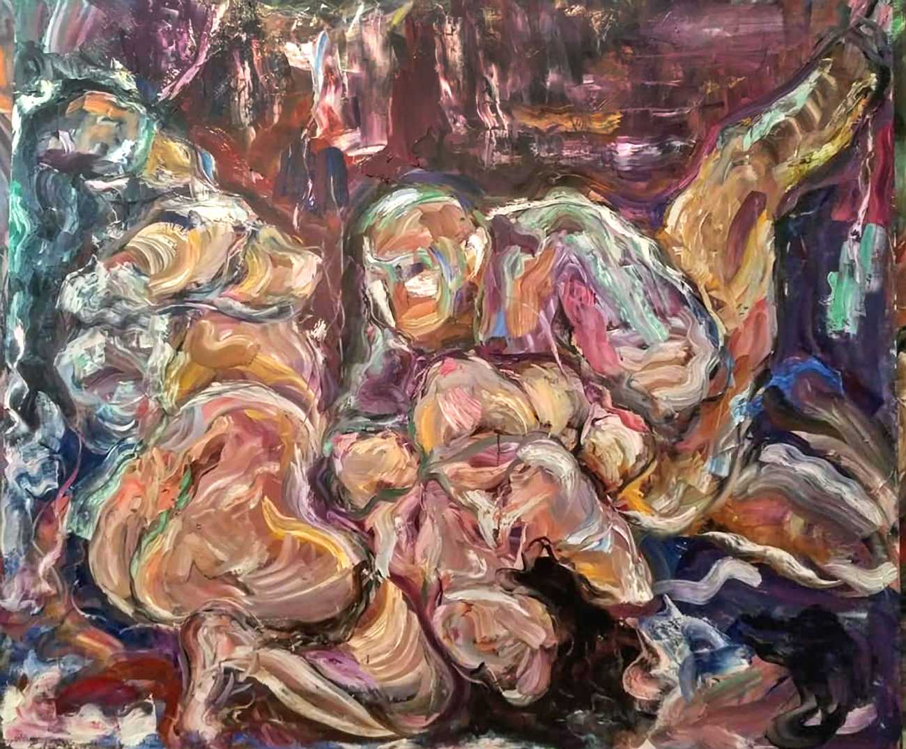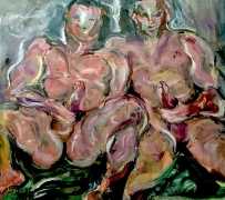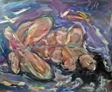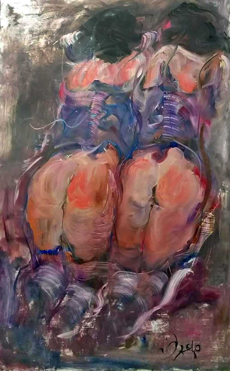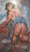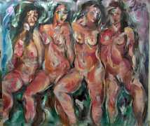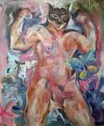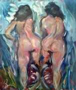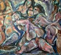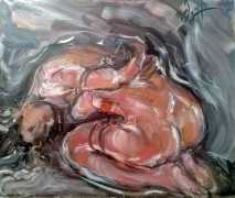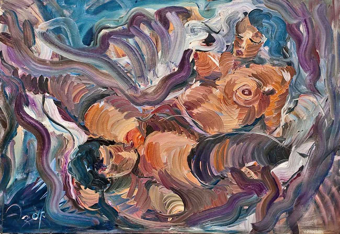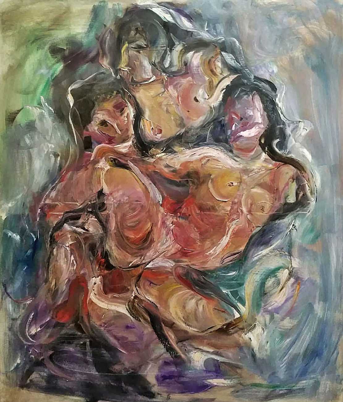 Her trademark style of erotic painting is to fill her canvases, often large ones, with bold, colourful, yet carefully worked paint, mirroring the joyful energetic power of satisfying intimacy.
