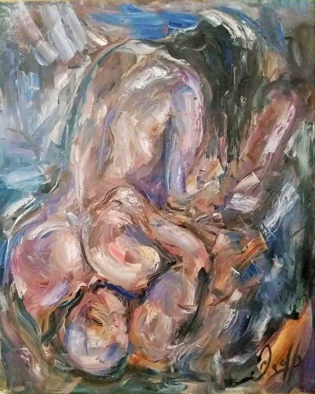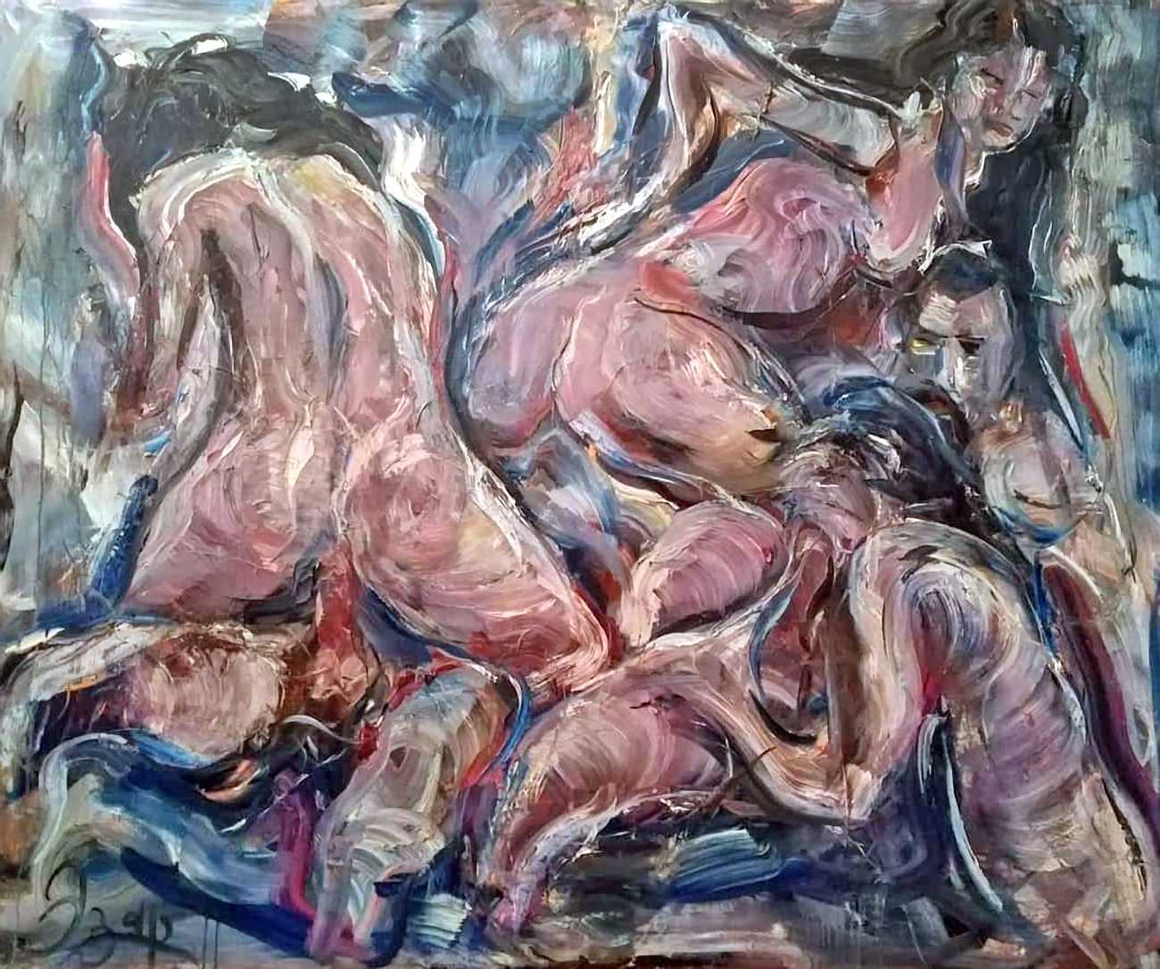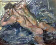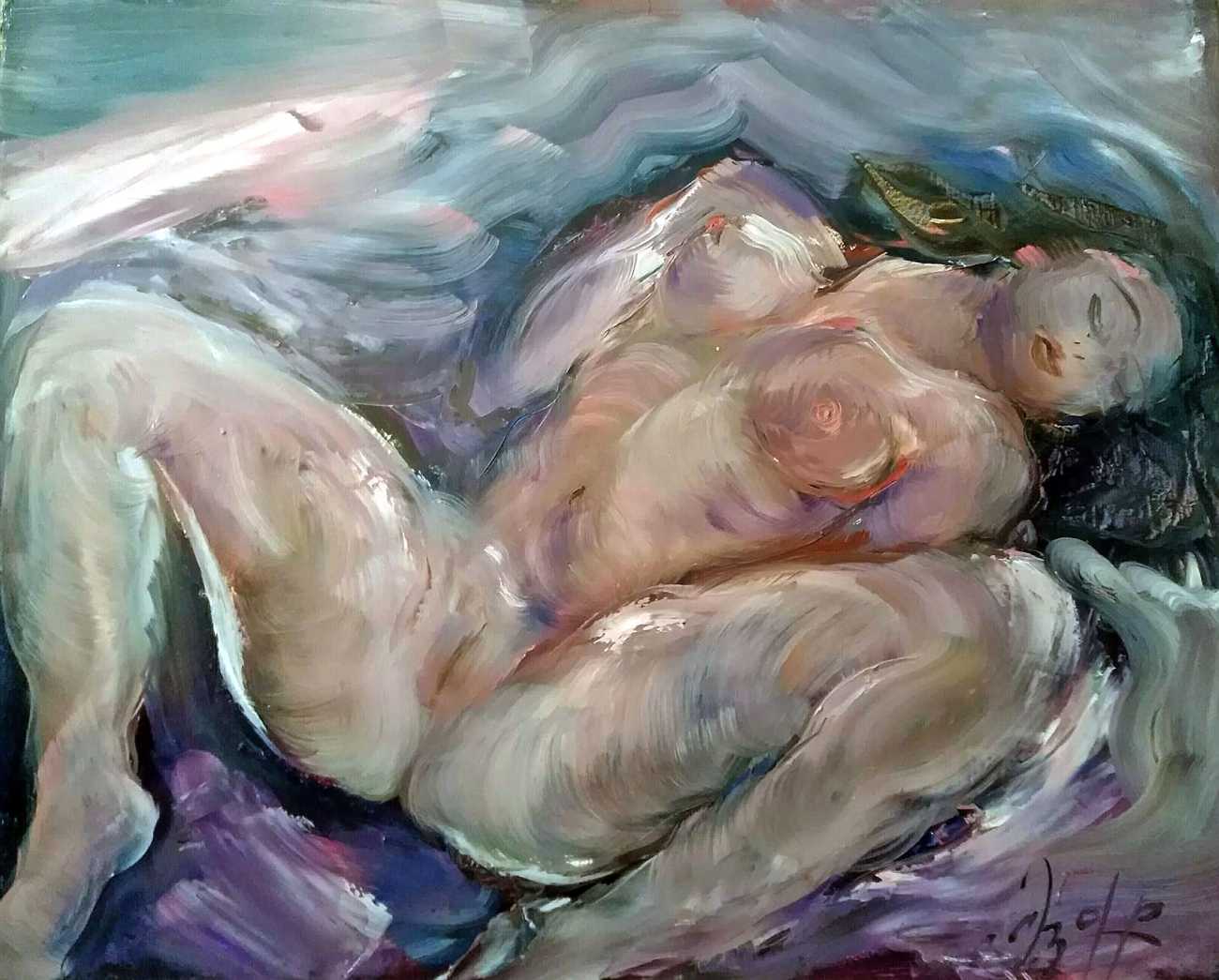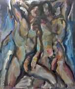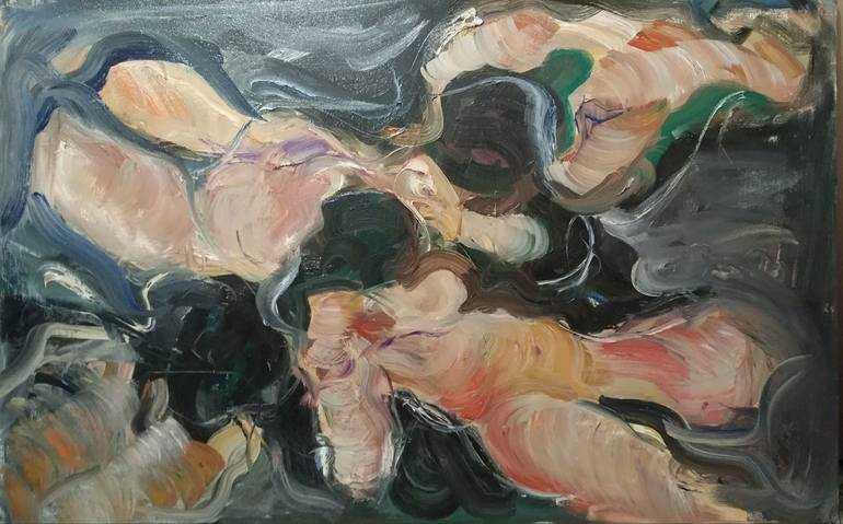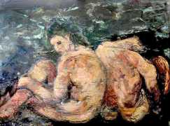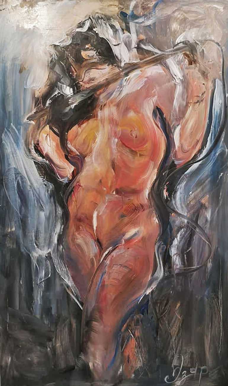 Her trademark style of erotic painting is to fill her canvases, often large ones, with bold, colourful, yet carefully worked paint, mirroring the joyful energetic power of satisfying intimacy.