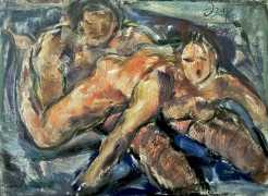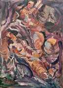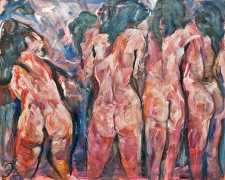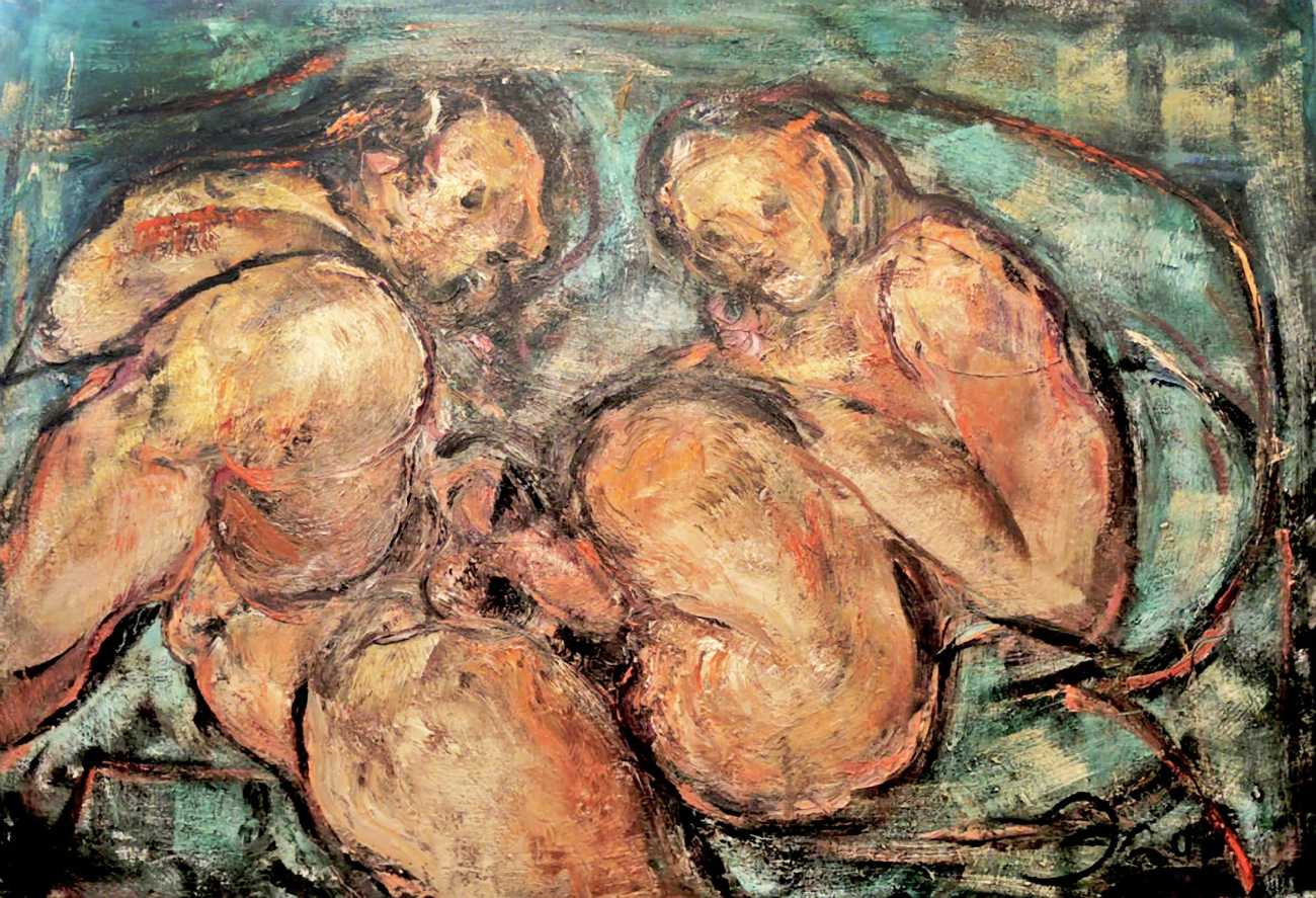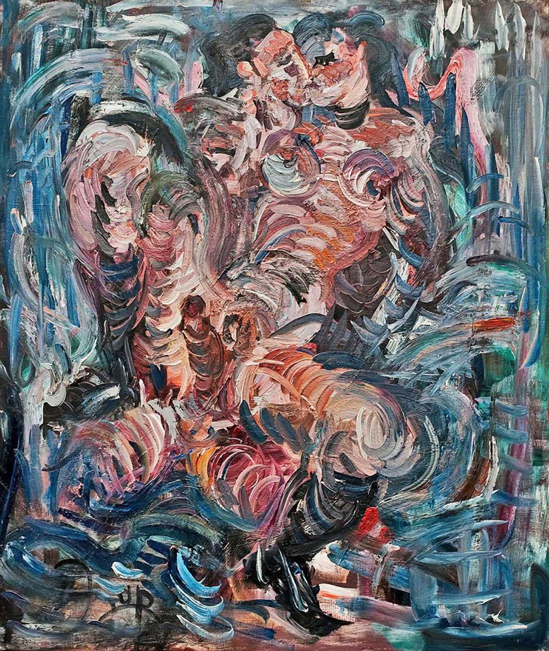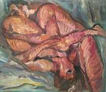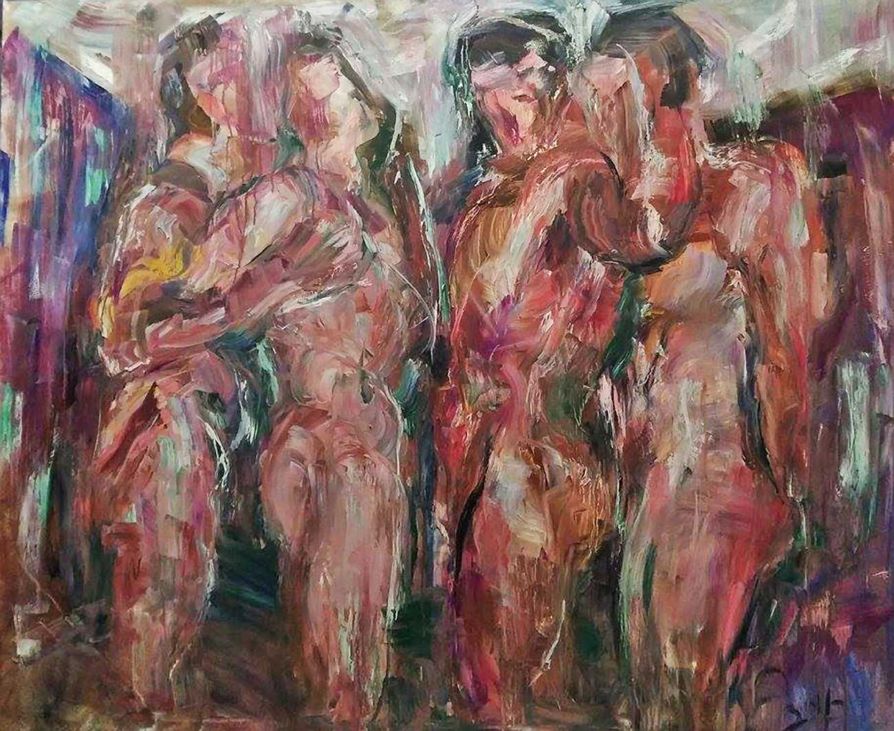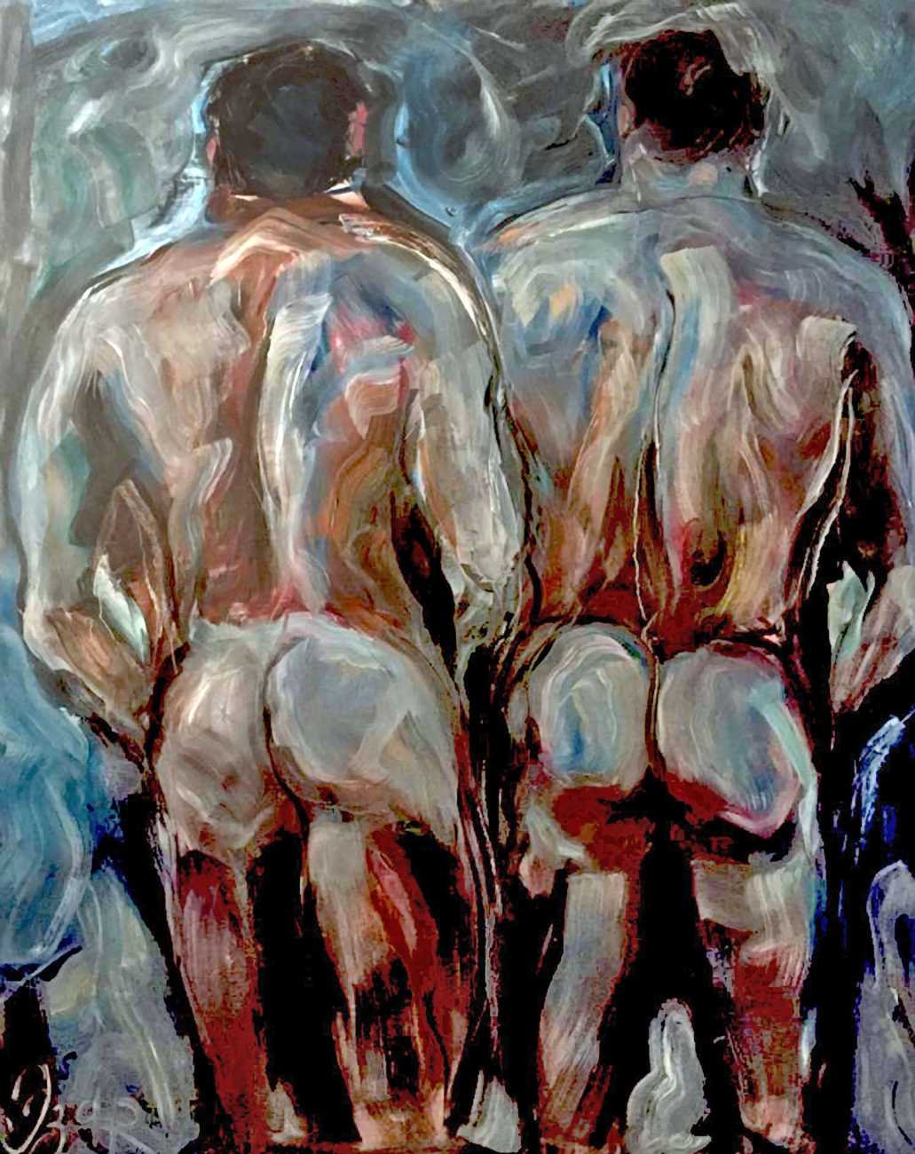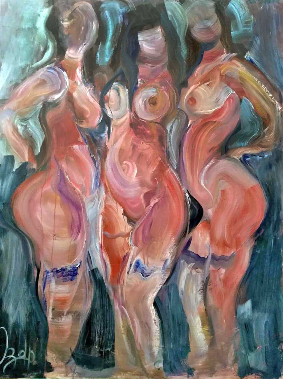 Her trademark style of erotic painting is to fill her canvases, often large ones, with bold, colourful, yet carefully worked paint, mirroring the joyful energetic power of satisfying intimacy.