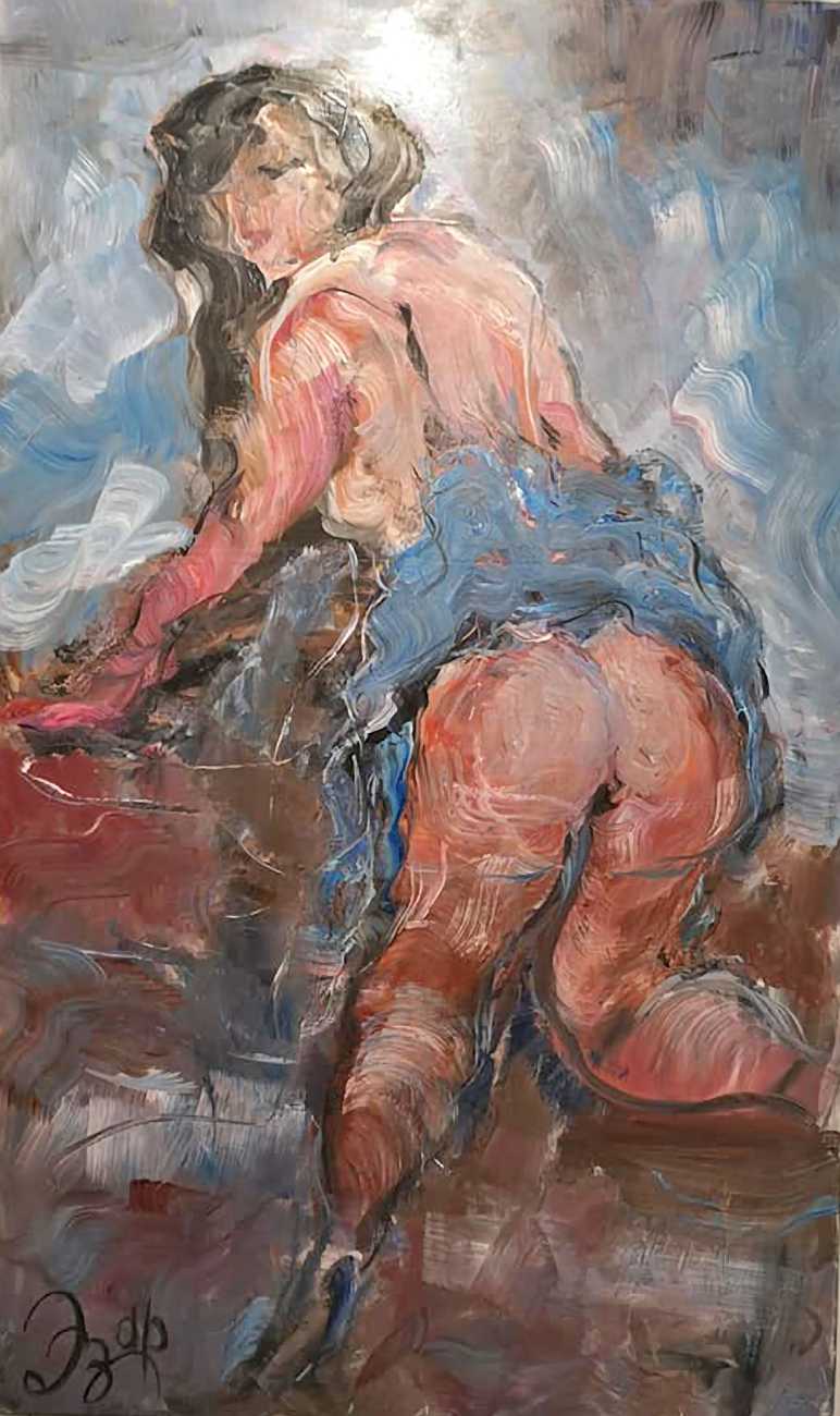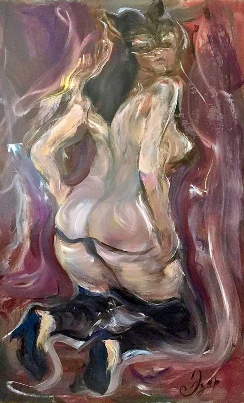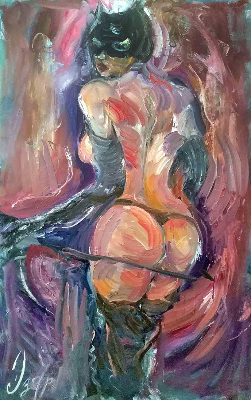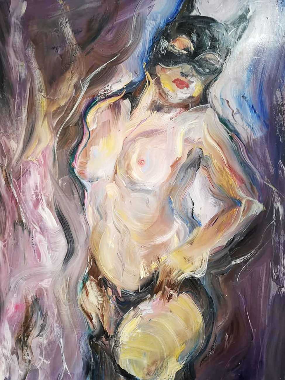 Yana Ezar grew up in Donetsk in Ukraine, and graduated from Donbas State Academy of Civil Engineering and Architecture in 2004. After graduating she moved to Moscow, where she now lives and works. She is a member of the Creative Union of the Artists of Russia, and has regularly exhibited in exhibitions, mostly in Moscow but also in other countries. As with many artists working in Russia, in recent years her work has been labelled extremist and officially banned, but through her Facebook account she has maintained her artistic presence and international following, including a collaboration with the Danish Galleri Comicart in Copenhagen.