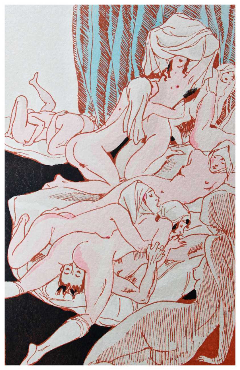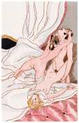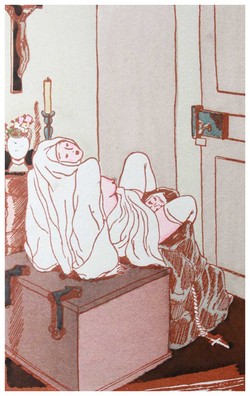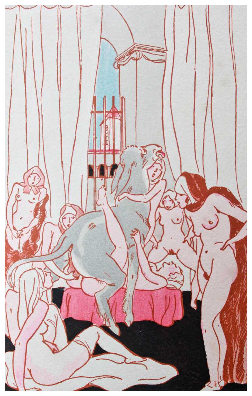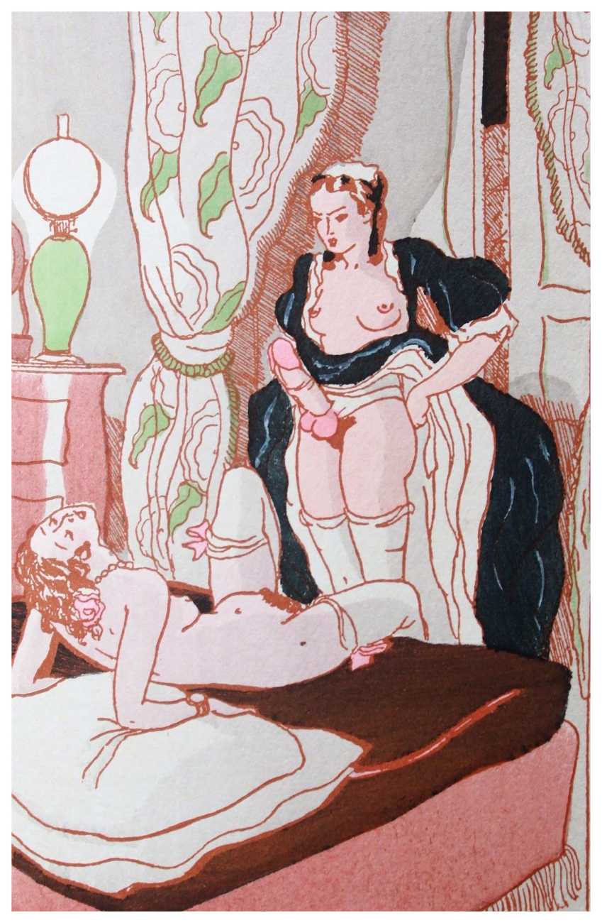 His illustrations first appeared in the Gazette du Bon Ton, and soon his work was to be seen in La Vie Parisienne, Fantasio, La Baïonnette, Le Rire, Le Sourire, and many other publications. As well as his erotic work for classics including Gamiani and Le diable au corps, he created illustrations for children’s books such as Grimm’s Fairy Tales, and drew the illustrations for Anatole France’s novel Abeille (The Bee). His friend the artist Francis Carco said of Brunner’s work, ‘Rarely has illustration been executed with such laudable awareness and such generosity of detail.’
