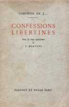 Confessions libertines (Libertine Confessions) is one of the better-written erotic novels published by Maurice Duflou in the 1930s. The title page suggests it was written by the Comtesse de J—, but it wasn’t; it is actually by Duflou’s associate Johannès Gros, a journalist who could readily turn his hand to a good set of ‘true confessions’.