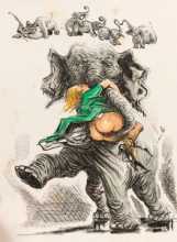 Le théâtre de la nature (The Theatre of Nature) is the best-known of the Santippa portfolios, though given that the lithographs are unsigned it is possible that these are not even by ‘the artist known as Santippa’ even though they have always been so attributed. The album consists of twenty hand-coloured prints, including a wonderfully-drawn elephant, also known in a brightly-coloured version.