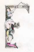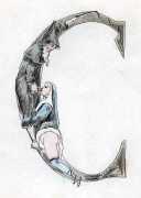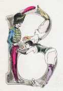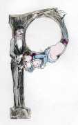 Irony and satire abound in the alphabet, as Apoux shows priests, monks, dancers, soldiers and milkmaids cavorting in the loops and lines of the letters.