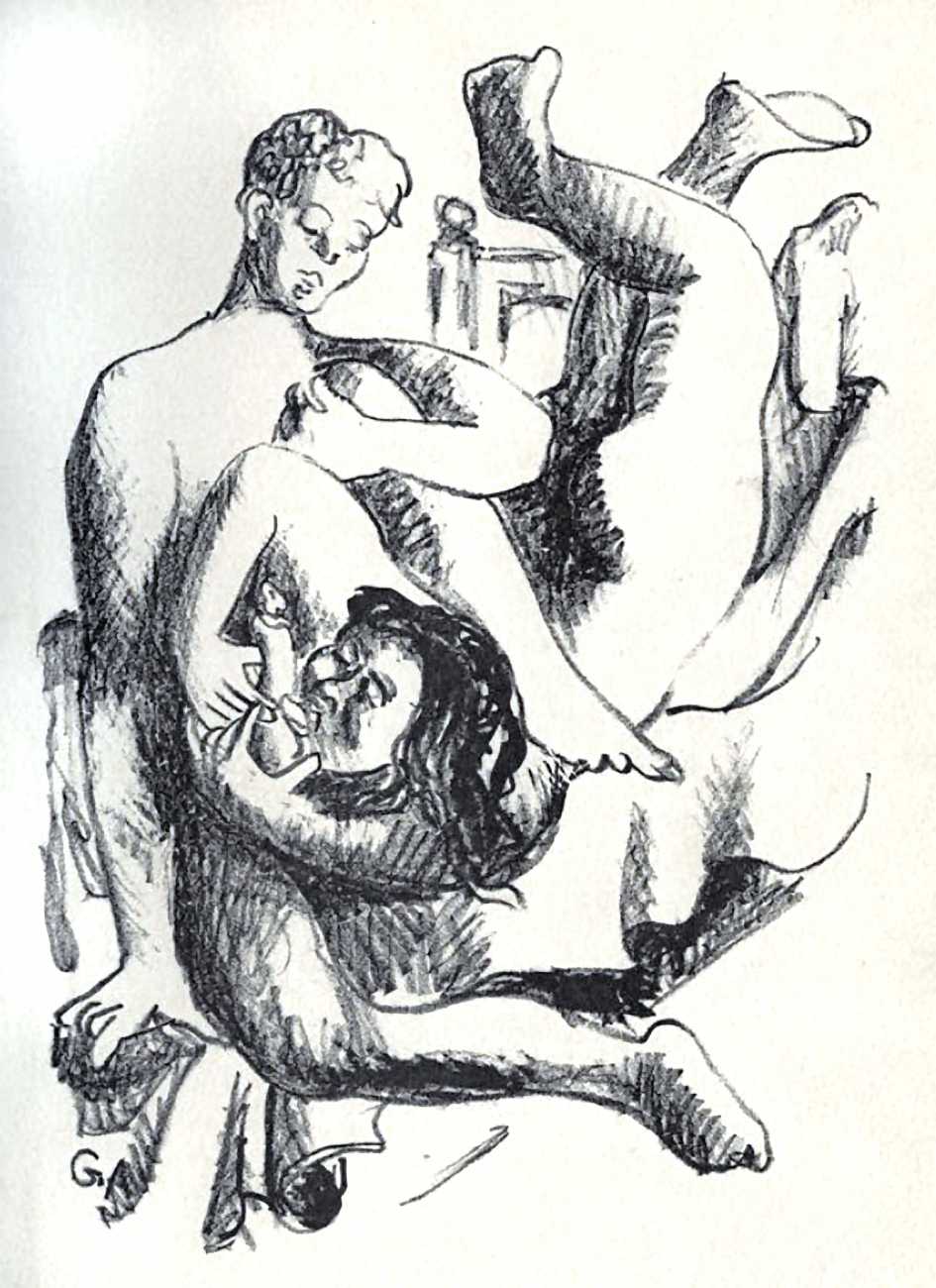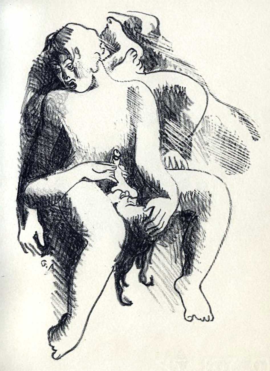 Paul Verlaine’s notorious Oeuvres libres consists of three collections of poems – Les amies (1867), sonnets in praise of lesbian love; Femmes (1890), a homage to Verlaine’s women friends and lovers; and Hombres or Hommes (1890), inspired by his homosexual experiences. Officially banned by the French government until 1949, they circulated widely underground, and it was almost the duty of any erotic illustrator to provide a graphic accompaniment to Verlaine’s verses.