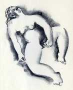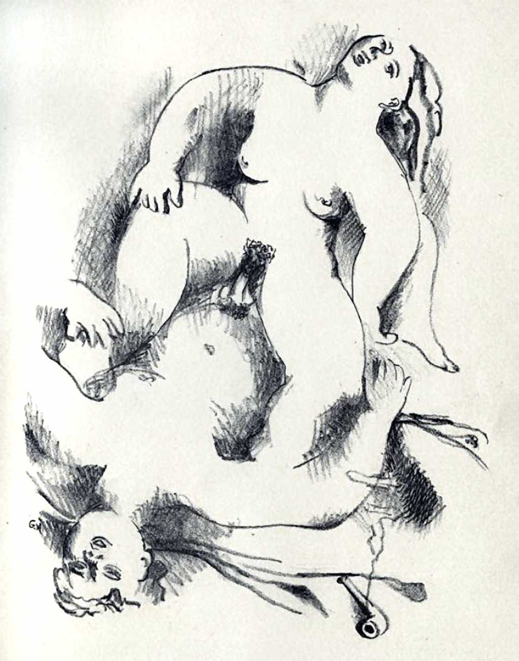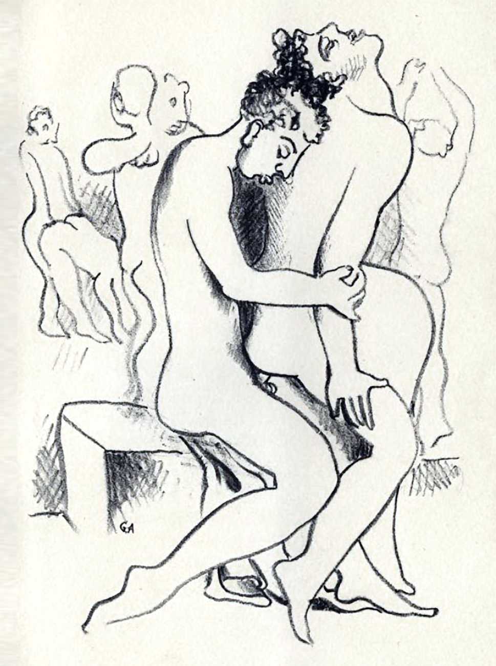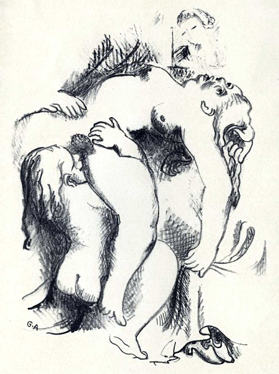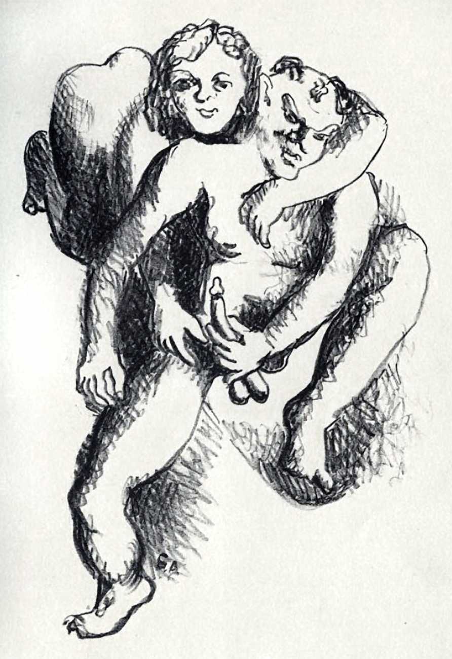 In 1935 Annenkoff was commissioned by ‘Les amis de Paul Verlaine’ to produce a set of illustrations for the Oeuvres libres, which he did in his own simple yet expressive avant-garde style. It was the only truly erotic project he completed, though in 1945 he did also illustrate two of the works by the cross-dressing aristocrat François Timoléon, Abbé de Choisy, for Aux Editions des Quatre Vents.