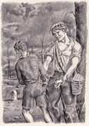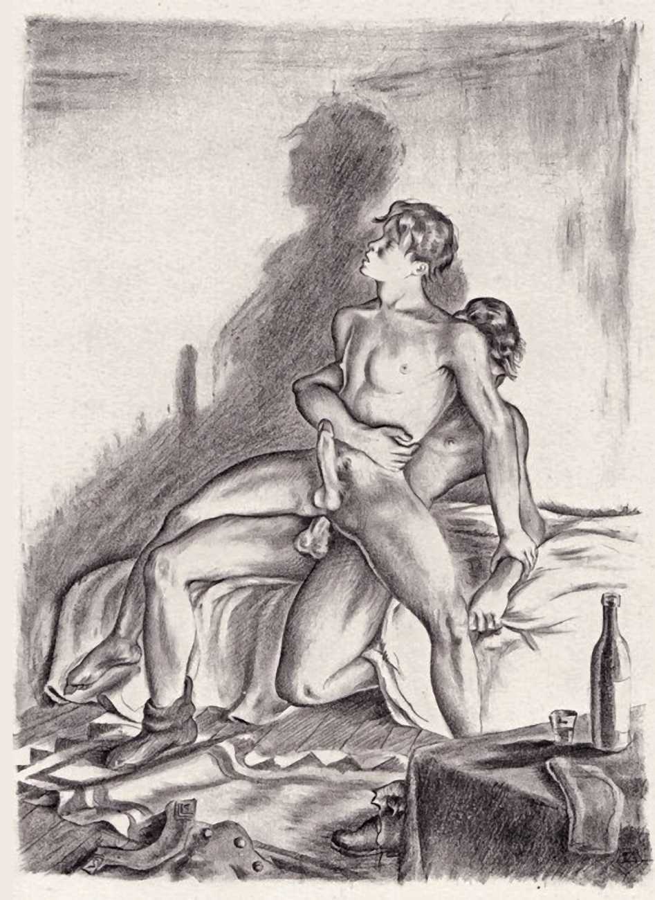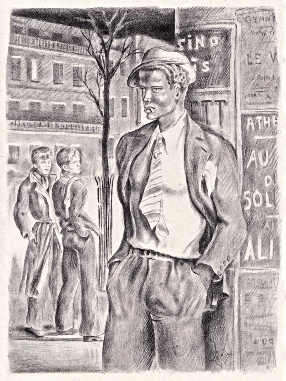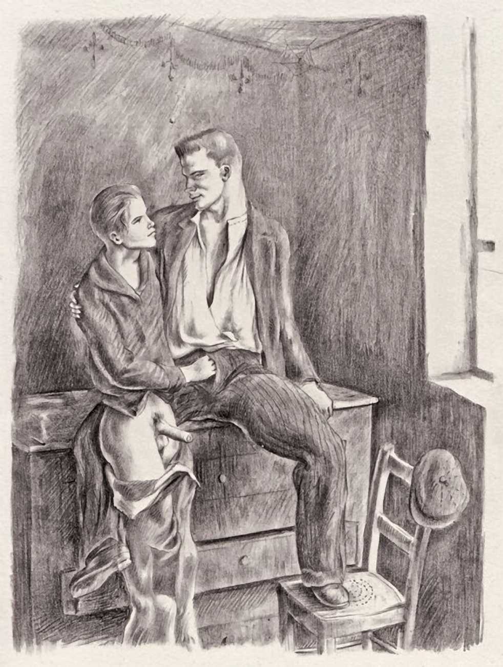 Vingt lithographies pour un livre que j’ai lu (Twenty Lithographs for a Book I have Read) was published in April 1945, just as the Second World War was about to end. It contains nineteen poems, all very specifically homoerotic, and the twenty accompanying illustrations of the title, but neither words nor pictures are attributed. There is, however, no doubt about the authorship of the poems or the artist of the images; this is an important and unique collaboration between Jean Genet and Roland Caillaux.