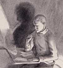 Vingt lithographies pour un livre que j’ai lu was published with no imprint or place of publication, in a limited numbered edition of 115 copies. It was reproduced in 1996 by Cahiers Gay Kitsh Camp, but unfortunately the quality of the reproduction was very poor.