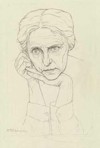 We are left to wonder how Teichmann’s art reflected her personal life. Given her change of name she clearly married, and Alfred Teichmann (1903–90) was probably her husband. Is the 1914 painting above of a mother and child a family self-portrait? Certainly by the time she made this characteristically detailed lithographic self-portrait in 1935 she knew she had accomplished the artistry she had worked for so hard.