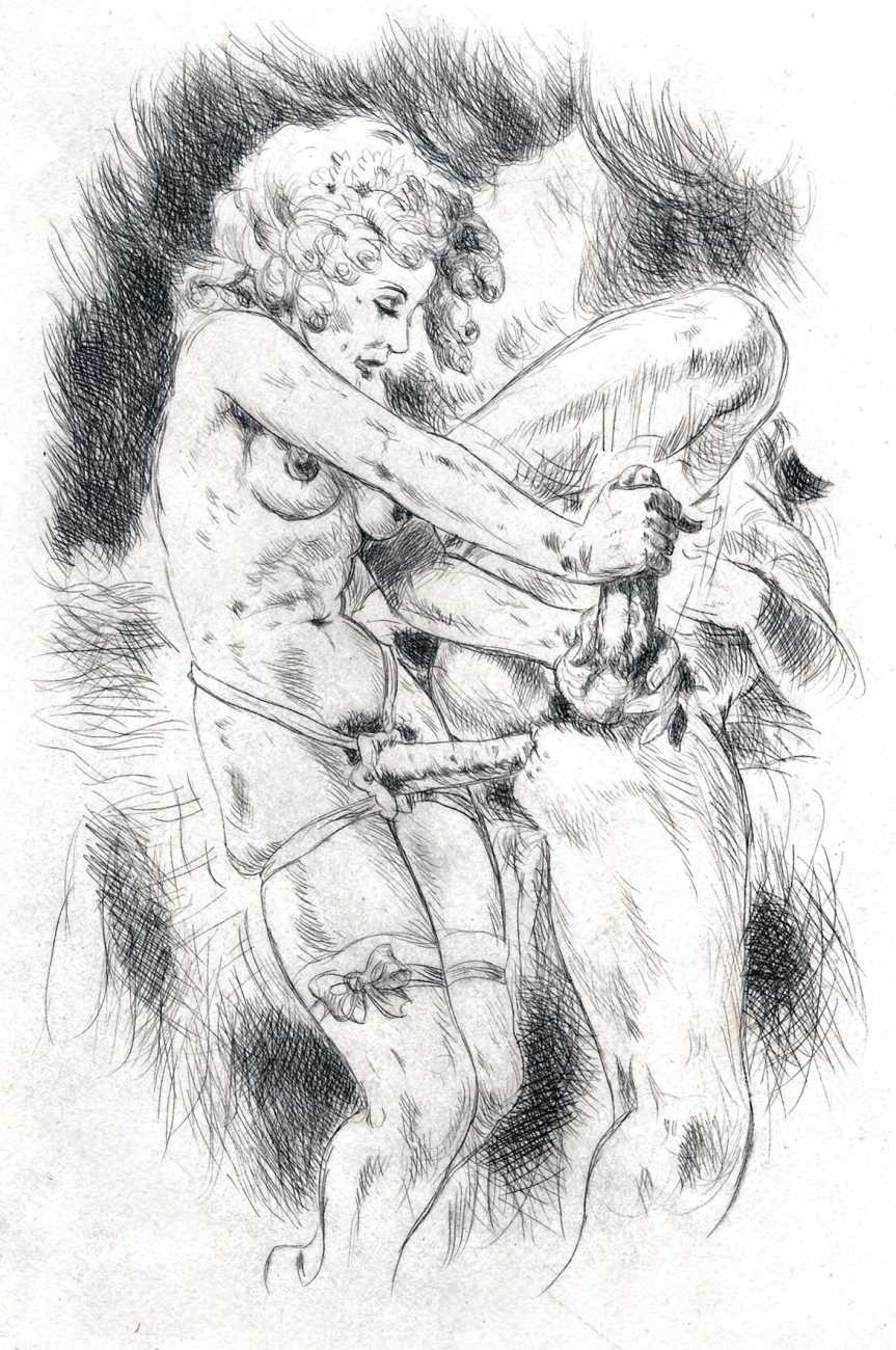 Jean Traynier’s explicit illustrations, very like his Cydalise portfolio, show the lovers’ bodies entwined in short-lived but ecstatic passion.