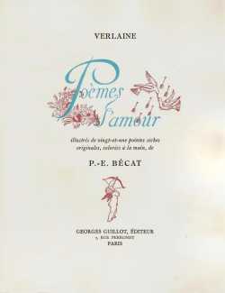 The first of four collections of poems by Paul Verlaine to be illustrated by Paul-Émile Bécat (three are included on this website, the fourth, Chansons pour elle et odes en son honneur of 1954, being more mundanely illustrated in monochrome), Poèmes d’amour was produced by Bécat’s ‘regular’ publisher Georges Guillot.