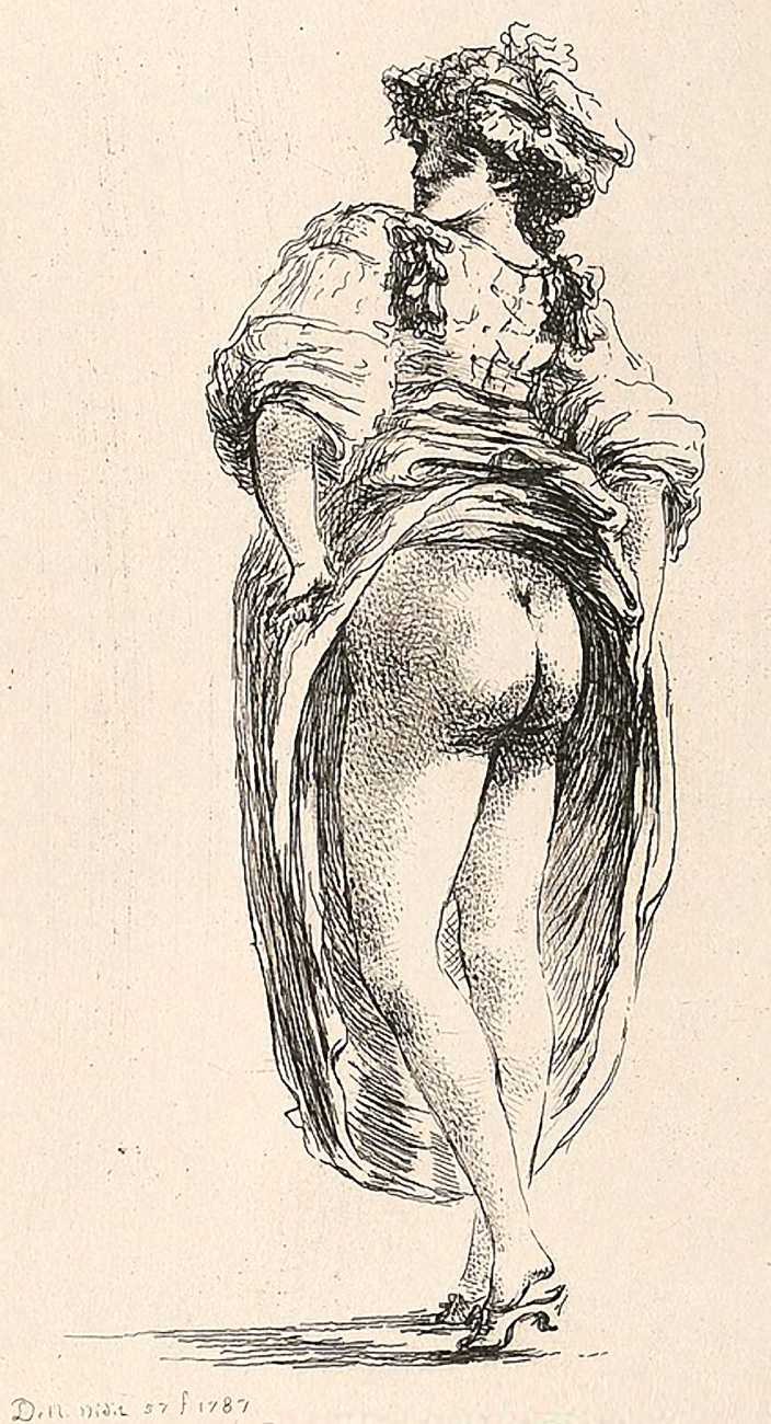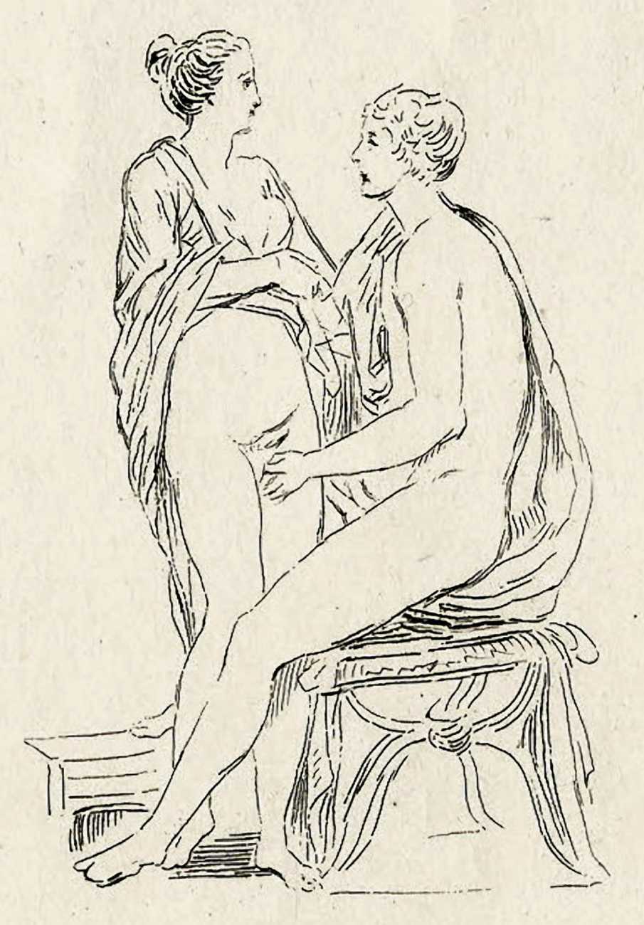 The first stirrings of the French Revolution in 1789 found Denon travelling widely in southern Europe, mostly in Italy, studying antiquities and spending a lot of time in Venice in the intimate company of one of the city’s most illustrious society women, Isabella Teotochi Albrizzi (1760–1836). Around this time he also visited the ruins of ancient Pompeii with its recently-discovered erotic wall paintings, and made the acquaintance of a French woman, Madame Mosion, whose physical attributes clearly stirred his sexual interest.