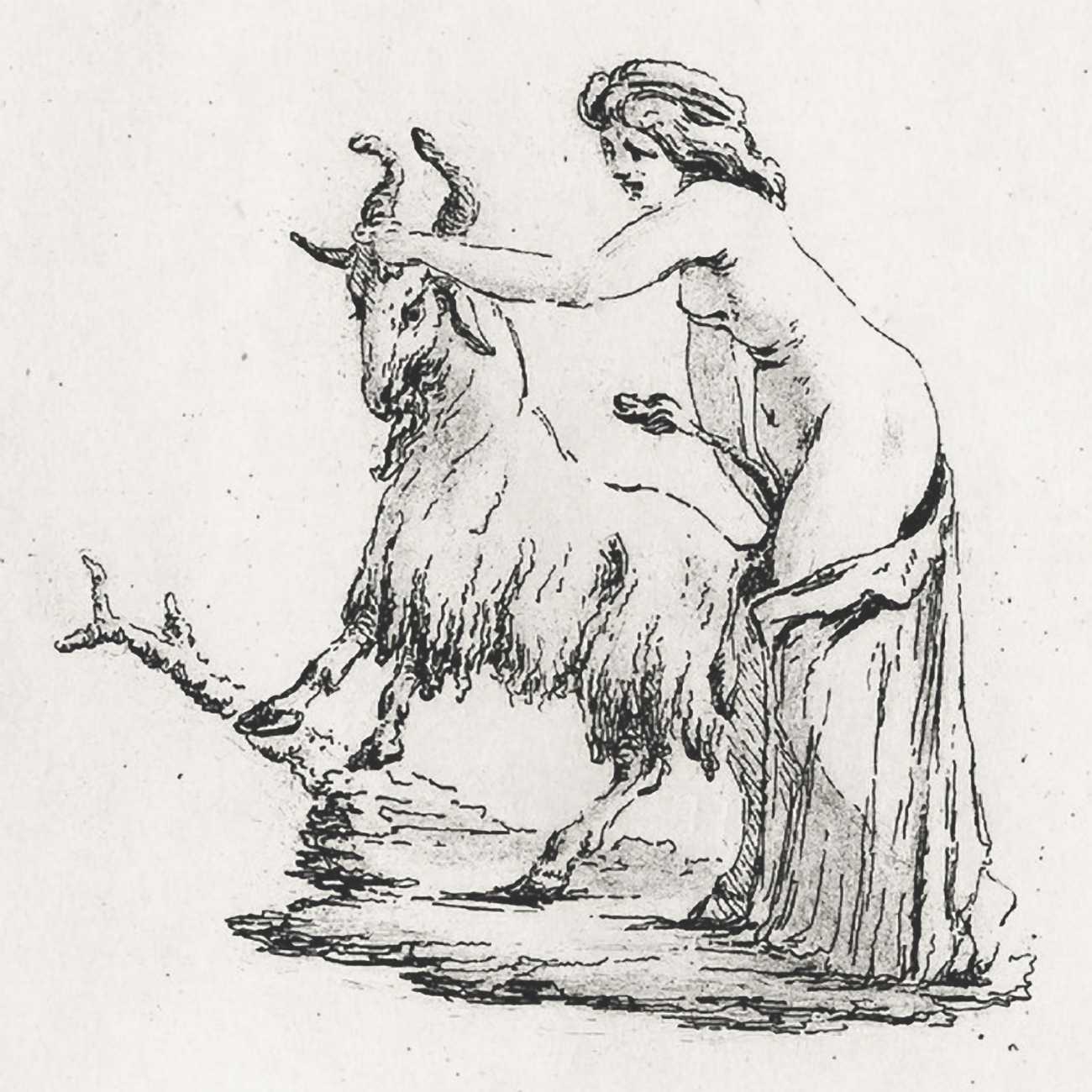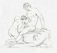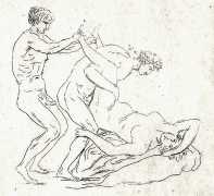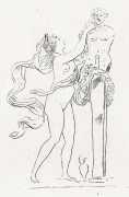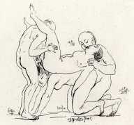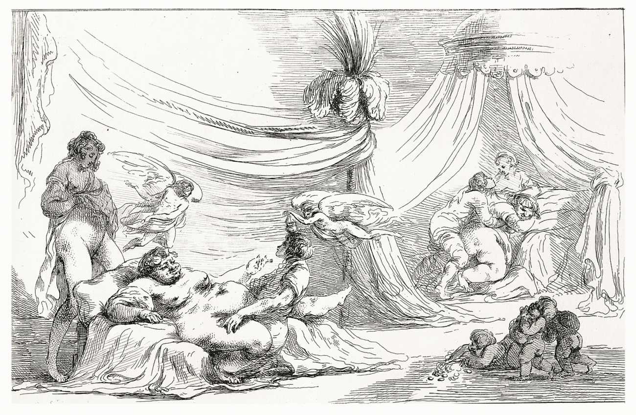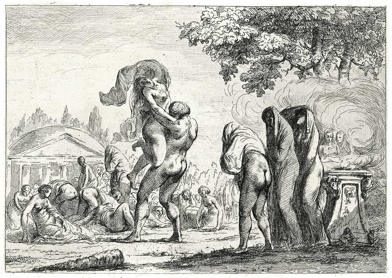 It was this period of existential decision-making which prompted the folio of engravings which quickly became known as L’oeuvre priapique (The Priapic Works), a miscellany of images loosely connected through their erotic nature. The first two are clearly aide-memoires of Madame Mosion’s physical attributes; of the rest some are sketches based on Pompeiian paintings, some erotic interpretations of classical themes, some fully worked and detailed engravings.