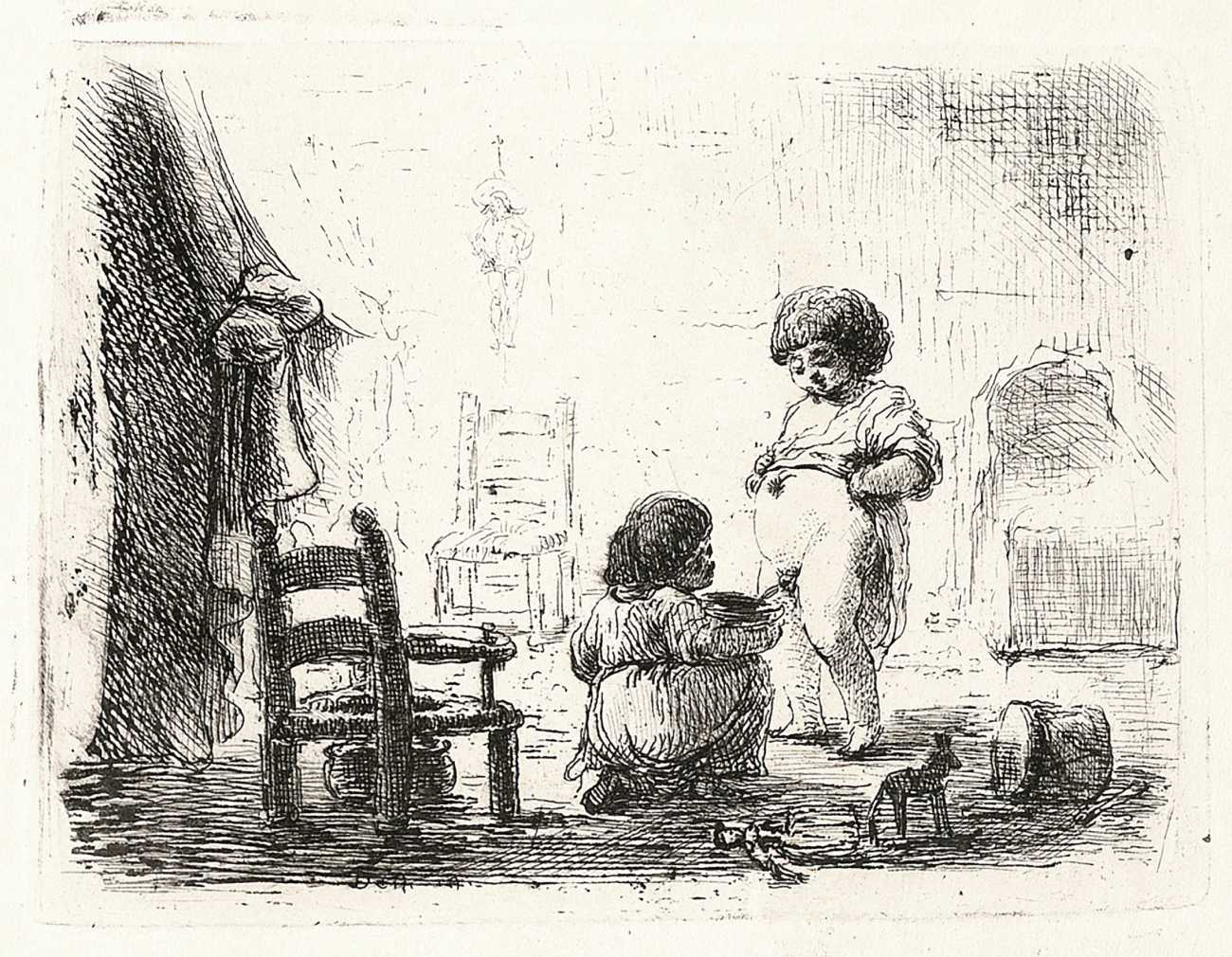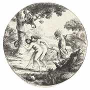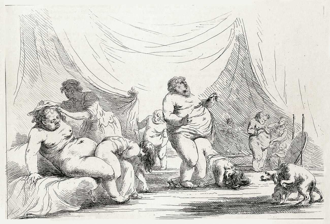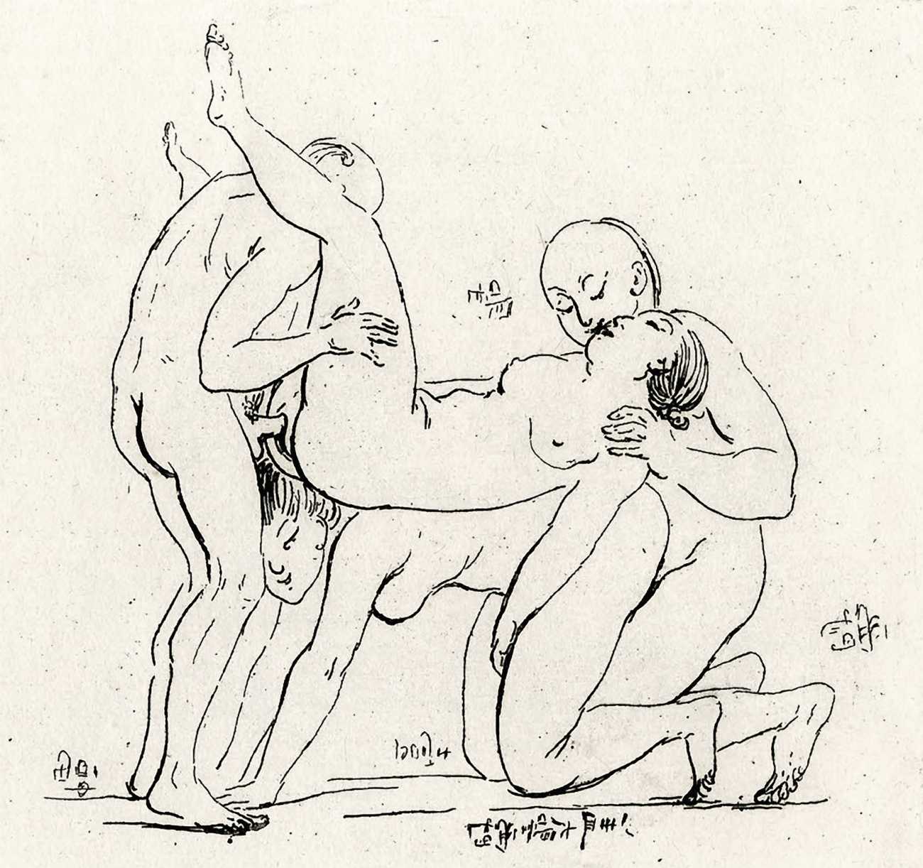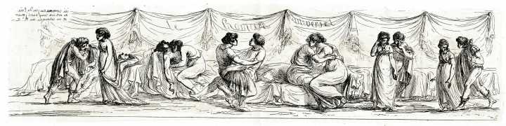 It was this period of existential decision-making which prompted the folio of engravings which quickly became known as L’oeuvre priapique (The Priapic Works), a miscellany of images loosely connected through their erotic nature. The first two are clearly aide-memoires of Madame Mosion’s physical attributes; of the rest some are sketches based on Pompeiian paintings, some erotic interpretations of classical themes, some fully worked and detailed engravings.