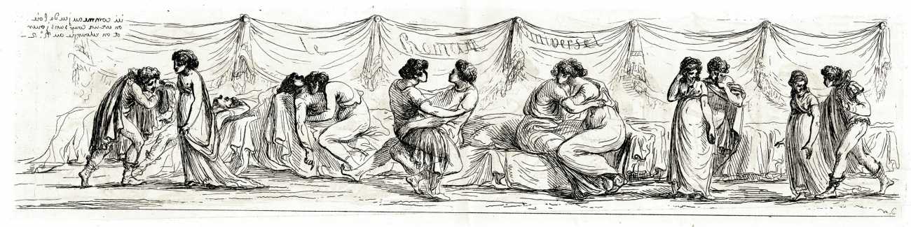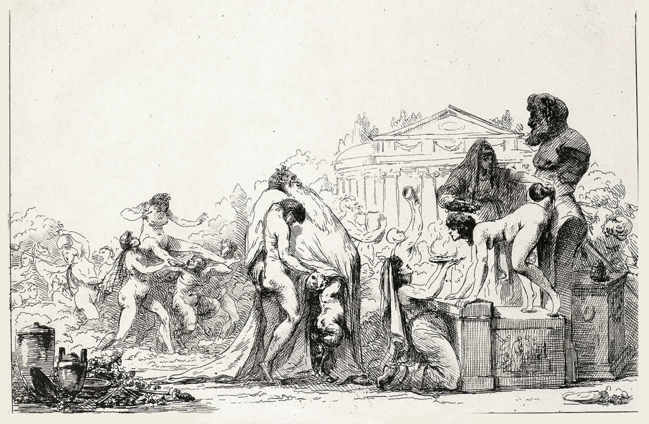Toward the end of his career, Vivant Denon created what he called ‘a lithographed autobiography’, expressed in terms of mythology: he portrayed himself at sixteen different ages, as the object of a tug of war between ‘love personified’ and ‘madness’. He found the desired relaxation by publishing a set of twenty-three engravings inspired by and depicting the sexual practices of the ancients in Pompeii.