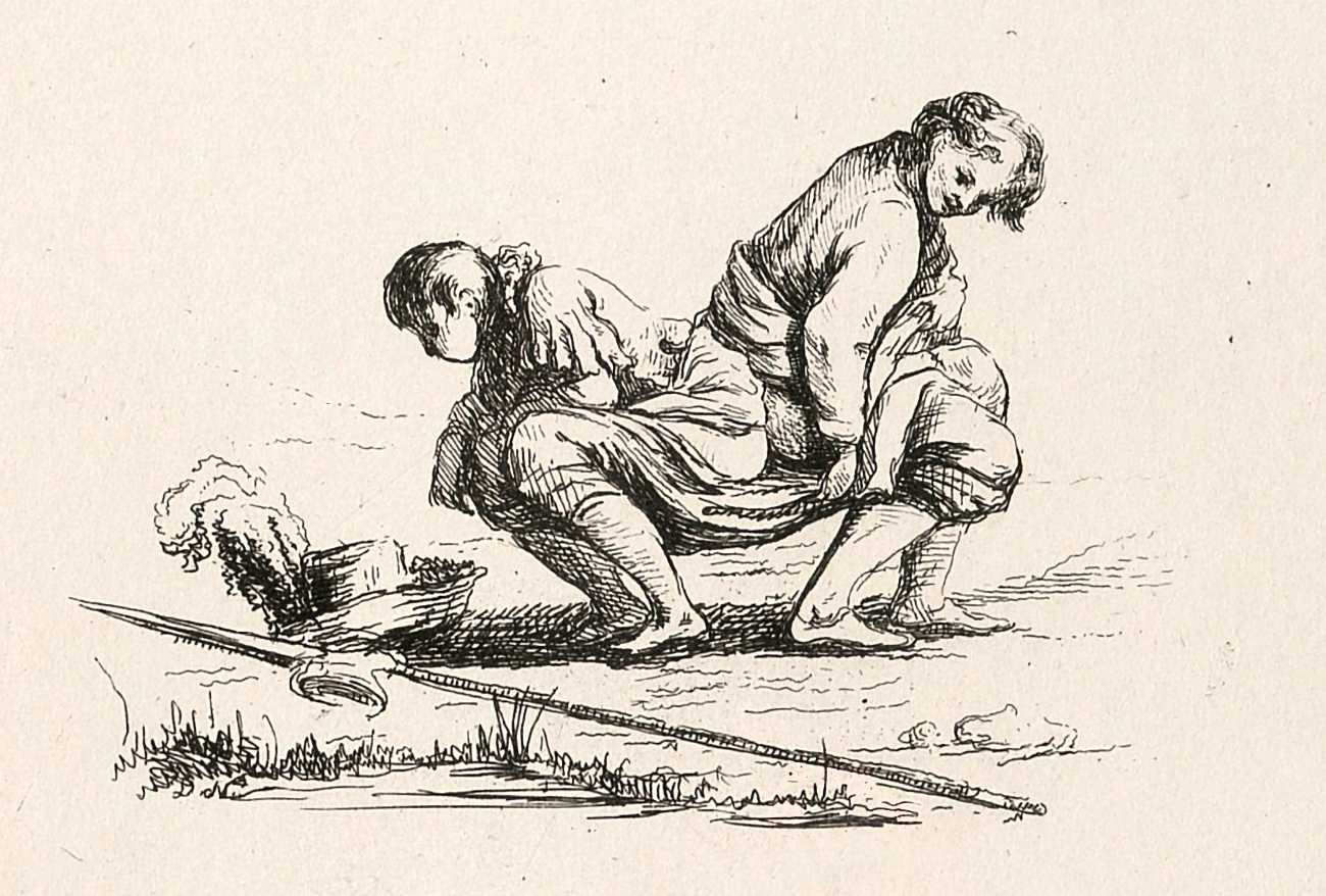 The volume, entitled L’oeuvre priapique, appeared in 1793. The interest aroused by the work resulted in four letters to be found in the l’Intermediaire des Chercheurs et Curieux. From them we learn that the first edition was hard to come by; that the editor Barraud, 23 rue de Seine, had just re-edited the original pieces of Vivant Denon by including 27 prints of L’oeuvre priapique; that the 1793 volume had contained 23 plates. This must mean that Denon added later to his initial plates. Brunet mentions in his Manuel du Libraire that at the Delorme sale one copy of the rare album had sold for 98 francs. In another of the letters, we read that most of the works were signed ‘Denon, inv. et seul. 1793’, that one of them was dated 1787 and another 1790, and that a few were neither signed nor dated.