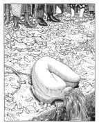 In 1992 Giraud’s Stardom imprint produced a limited-edition erotic portfolio of twenty drawings called Histoire d’X (History of X). Giraud’s long-time collaborator Alejandro Jodorowsky thought they were some of his best work to date, and suggested a collaboration in which Giraud would produce more drawings and Jodorowsky would write a linking text. The result was Griffes d’ange (Angel Claws), published by Humanoïdes, a Franco-American publishing house founded in December 1974 by Giraud with Jean-Pierre Dionnet, Philippe Druillet and Bernard Farkas.