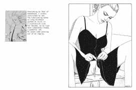 An anonymous Amazon reviewer writes usefully, ‘A graphic curiosity, disturbing, odd and rather distressing in places, but there is a strangely redemptive quality which keeps you turning the pages. Intelligent, with striking, terse artwork, I wouldn’t recommend it to those who are sensitive to the subject matter as it could trigger painful emotions. But I like the message which seemed to convey a woman rising above the abuse in her past, and battling through the deep-set pain surrounding her sense of value as a sexual being and a female. The end certainly caught me off-guard. Intriguing.’