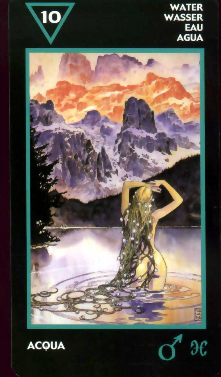 We have included this set of (deliberately low-resolution) images partly to demonstrate the breadth of Manara’s artwork, and partly because it is currently about the only work of his currently in print and affordable. The pack, together with full instructions, can be purchased directly from Lo Scarabeo’s website here, or through all the usual retail and online channels. Each card has Italian, French, English, Spanish and German text.