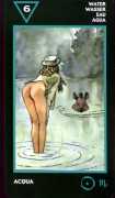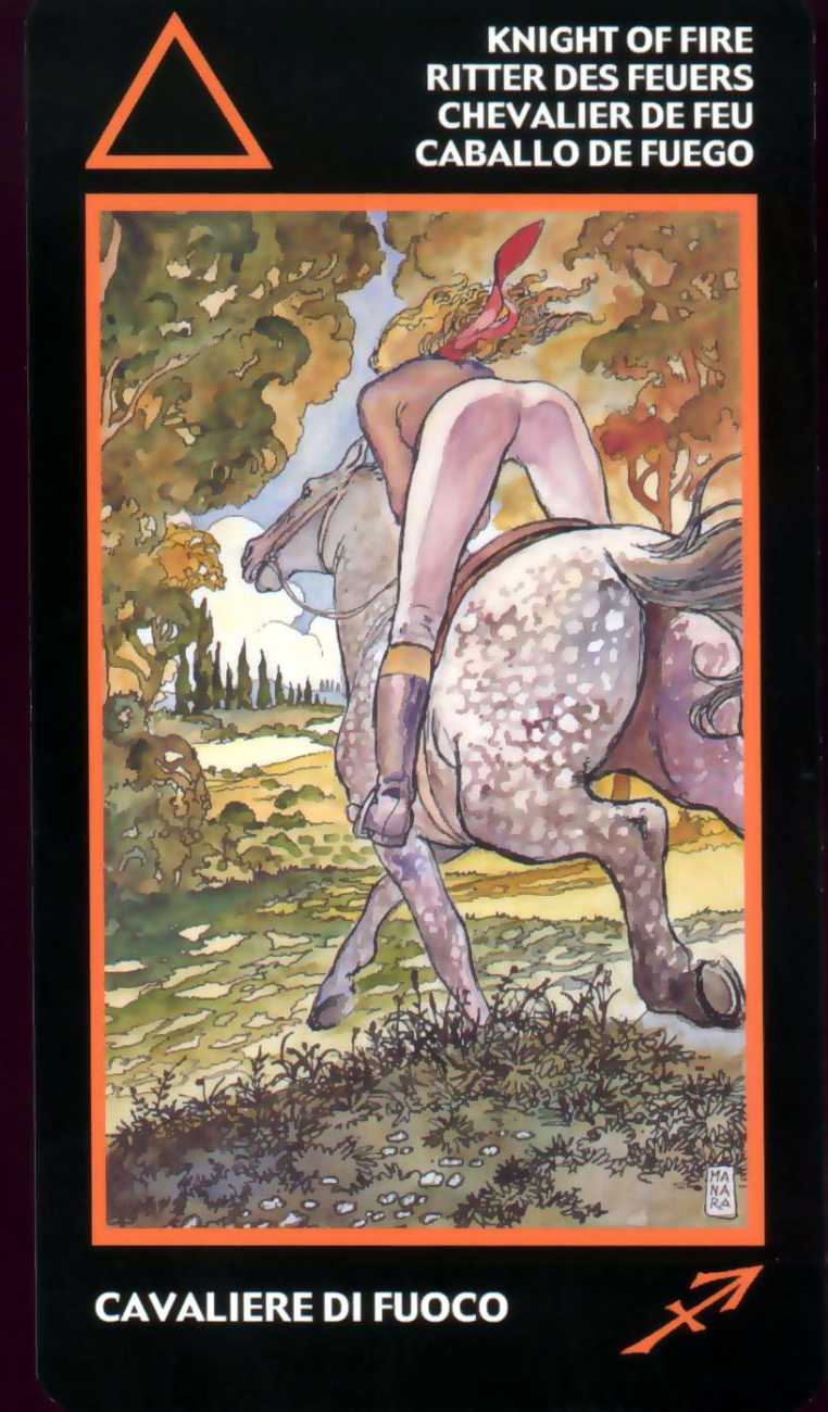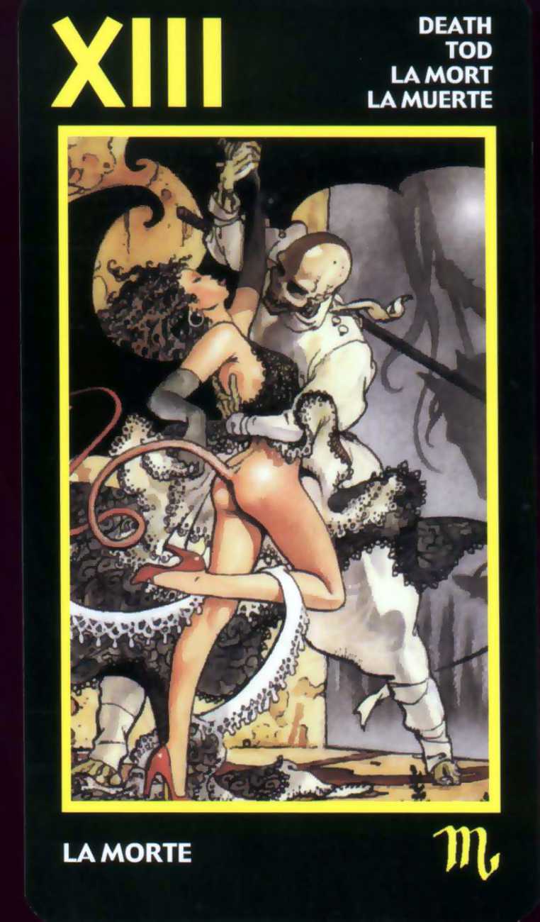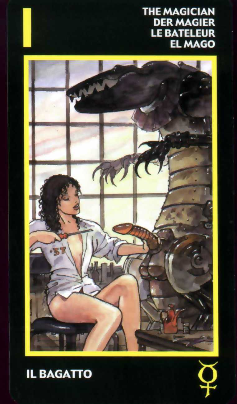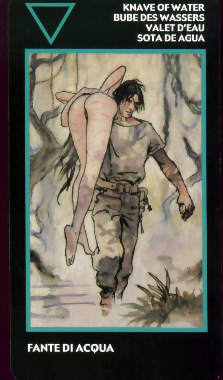 Here is what Lo Scarabeo, the publisher of the Manara Erotic Tarot, says about this 78-card pack, which reproduces rather randomly-selected Manara images to accompany each card: ‘The acknowledged master of erotic drawing, Milo Manara transports us into a dreamlike yet carnal dimension that sings praises to life itself. In the reconstruction of dreams, stories, desires, nightmares and daily life events, Manara takes us into his well-known sensual universe, above all through his homage to the female body, symbol of the universe. The cards also contain planetary and zodiac symbols as well as those of the four elements, useful for discovering astrological answers.’
