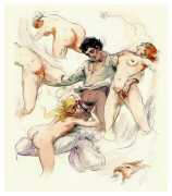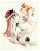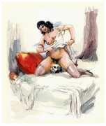 We can only guess why Villa was moved to illustrate Haraucourt with these twelve colourful illustrations, the only truly erotic book illustration portfolio he produced. Maybe he had come across Frans de Geetere’s powerful images from a few years earlier, which you can see here. Villa’s and de Geetere’s circles would quite likely have overlapped.