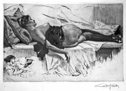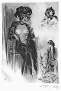In 1908 Alméry Lobel-Riche illustrated La ville et les champs (Town and Countryside) by Jérôme and Jean Tharaud for the publisher Pelletan. A year later the Paris publisher Louis Michaud, impressed by the Pelletan volume, asked Lobel-Riche what other material he had, and was delighted to see so many images of naked and semi-naked women, all at the very attractive juxtaposition of the risqué and the tasteful. Forty of the etchings were selected, the volume was commissioned under the title Études de filles (Studies of Girls), and the poet and critic Séverin Faust (1872–1945), better known by his pseudonym Camille Mauclair, agreed to write texts to accompany them.