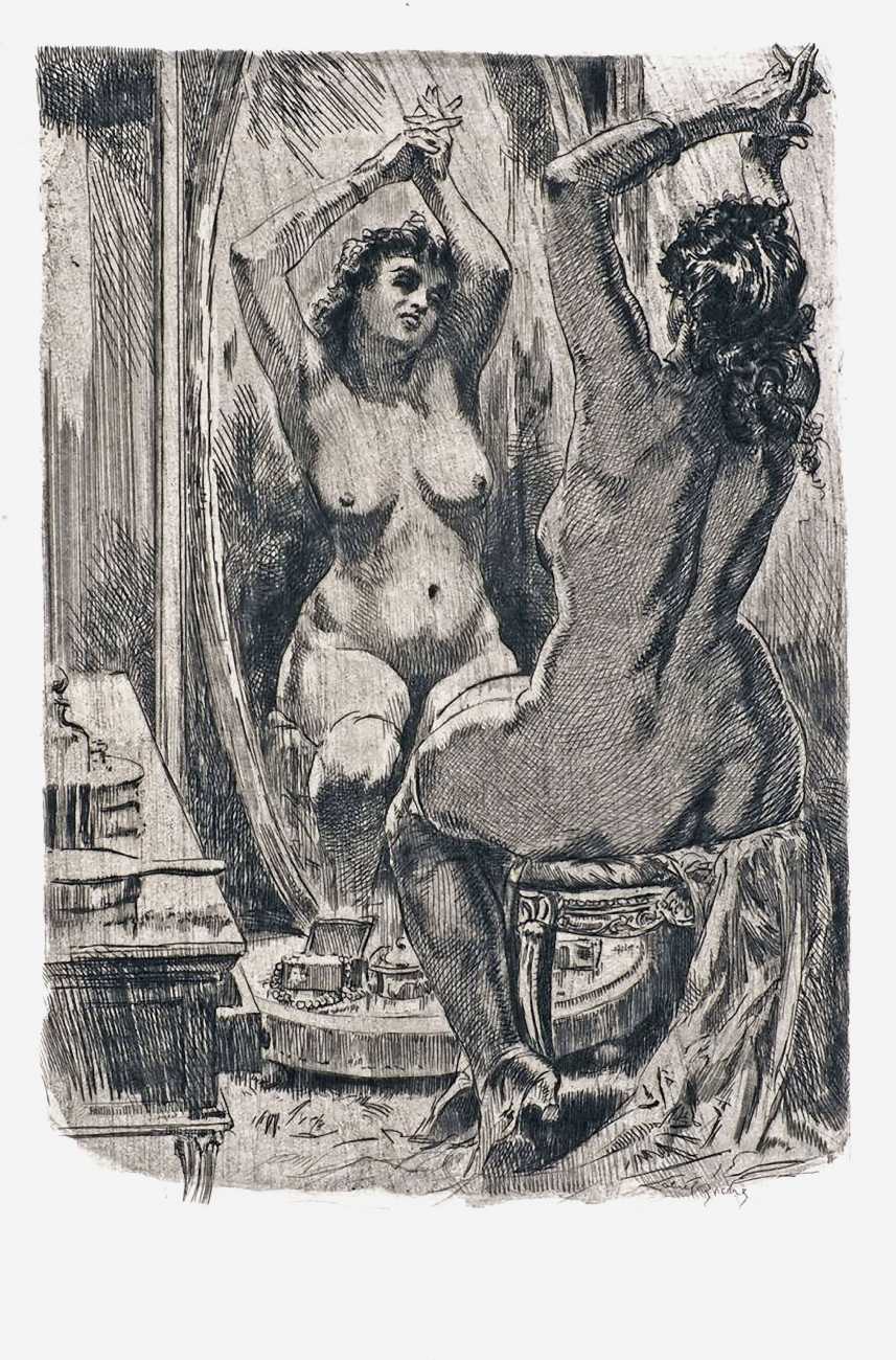 Lobel-Riche shared many of Mirbeau’s views and concerns about a conservative class-ridden culture, especially the treatment of lower class women, and produced a powerful portfolio of etchings to accompany Le journal; his portrayal of Célestine brings Mirbeau’s words vividly to life.