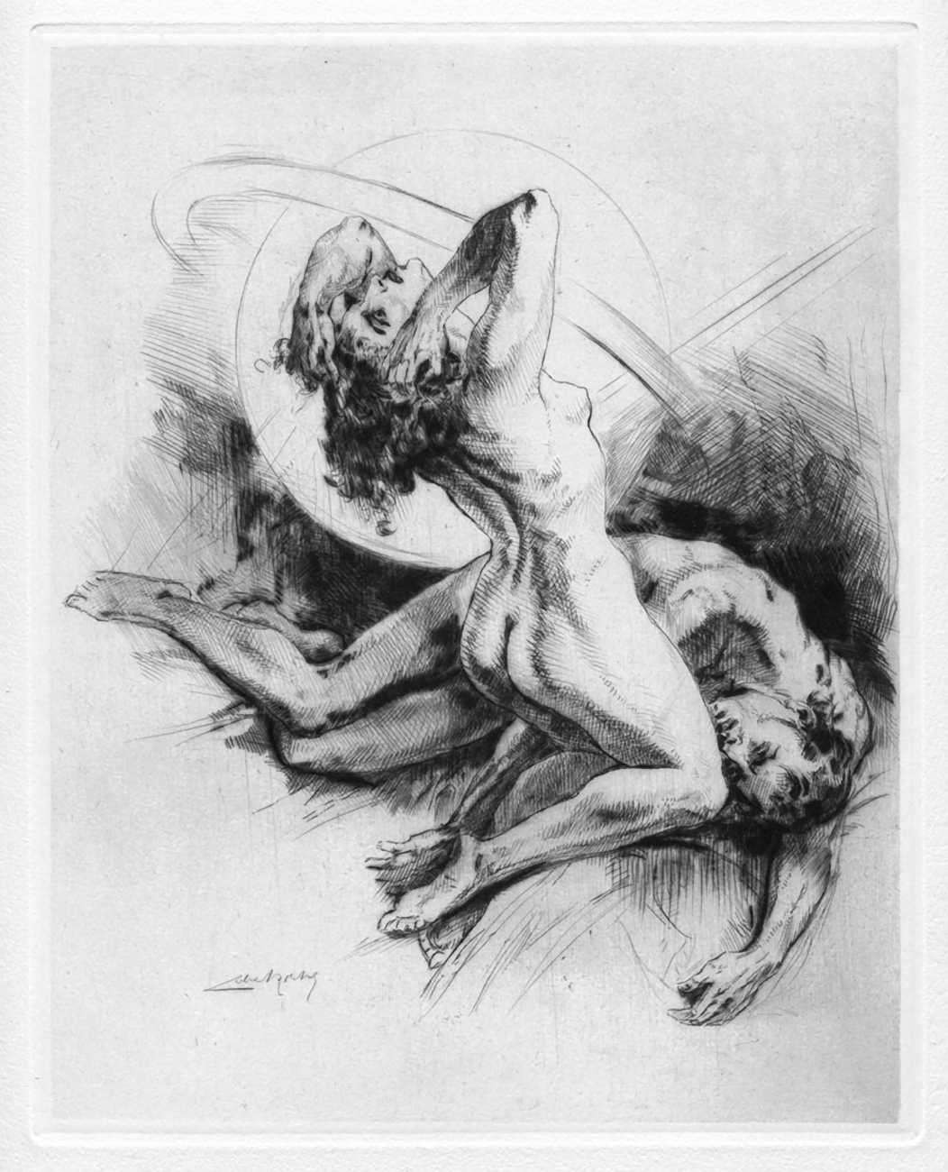 The etchings are trademark Lobel-Riche, strong and detailed, matching well the Margerit poems. We have included the three original drawings included in this presentation copy of the book.