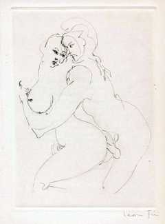 Leonor went on to illustrate three of Gilbert Lely’s books, L’Épouse infidèle of 1966, Oeuvres poètiques of 1977, and Solomonie la possédée of 1979. When L’Épouse infidèle was published, she gave him a copy of the engraving from the book of a couple making love, which she inscribed ‘To my friend Gilbert Lely; The physical difference between man and woman, this fabulous luxury dazzles me’.