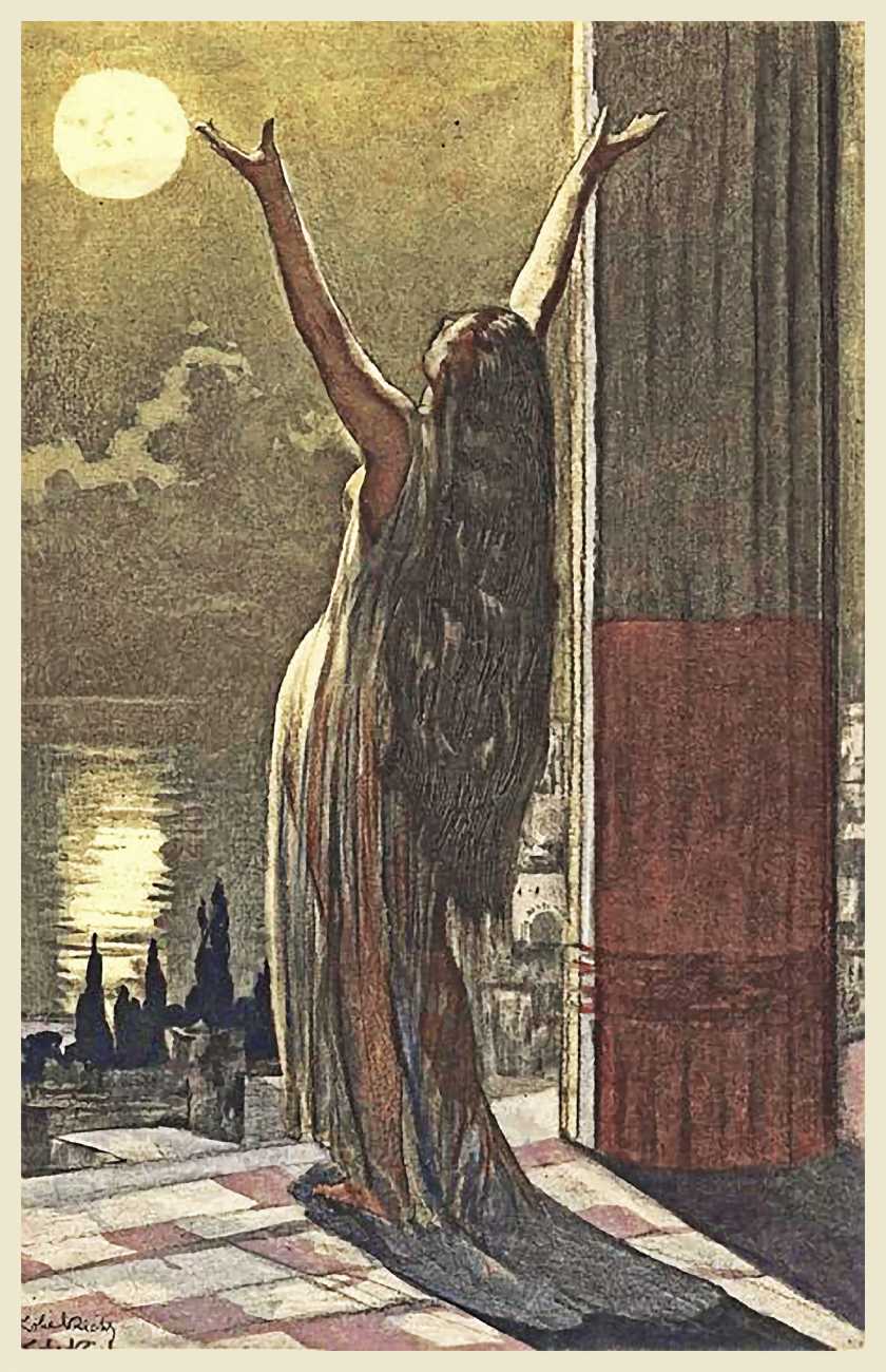 It is a pity that Rombaldi only asked Lobel-Riche for five illustrations for Salammbô, as those we have show him using colour very effectively; the frontispiece illustration of Salammbô on Barca’s sculpted head is particularly striking.