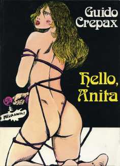 Anita first appeared in Crepax’s work in 1974, with further episodes in 1979 and 1989. Anita is still a Crepax woman, voluptuous and wearing as little as possible, but she is less troubled by aliens, humanoids and robots as by technology. In the first Anita episode it was the television (in English Anita Live), in the second the telephone (Hello, Anita), and in the third and final one the computer (Input Anita).