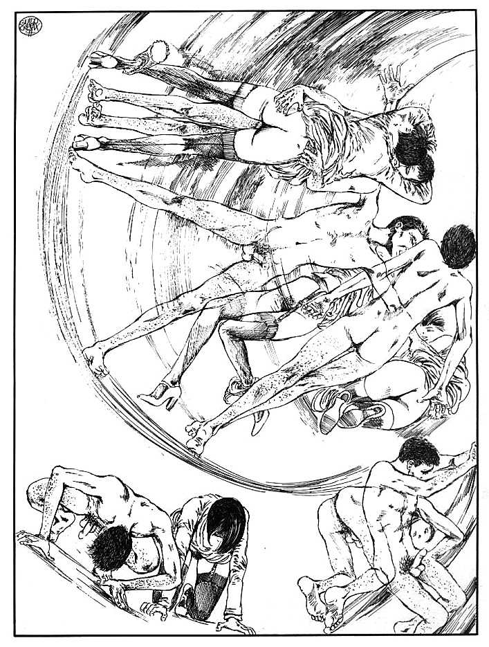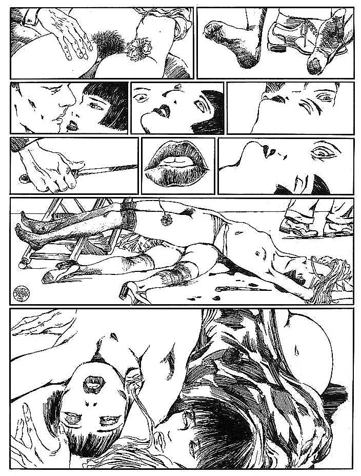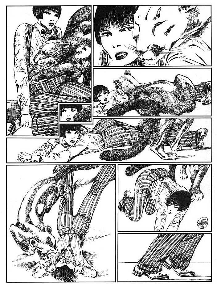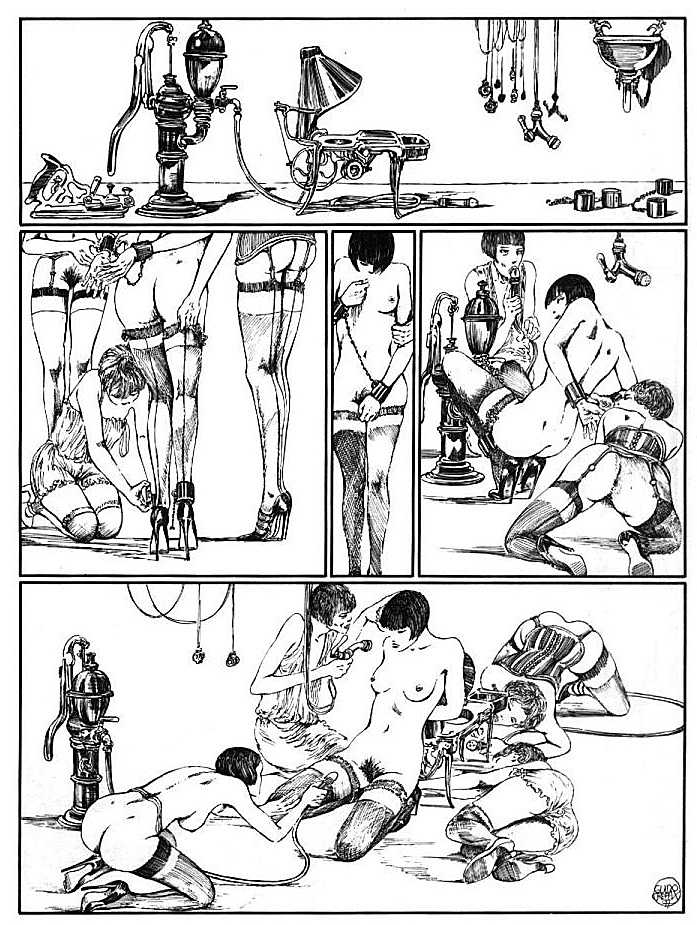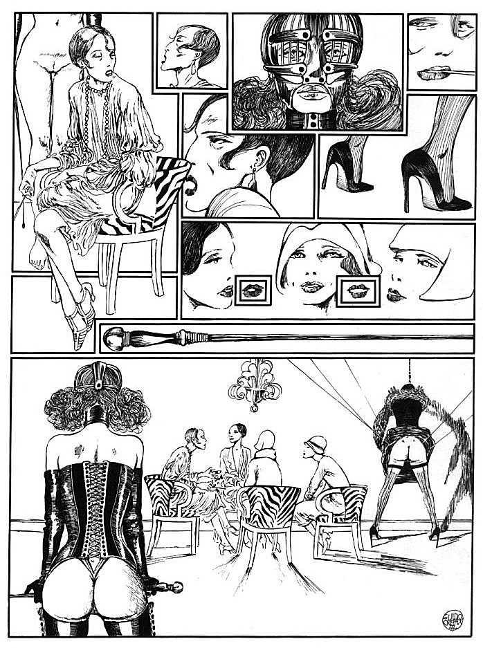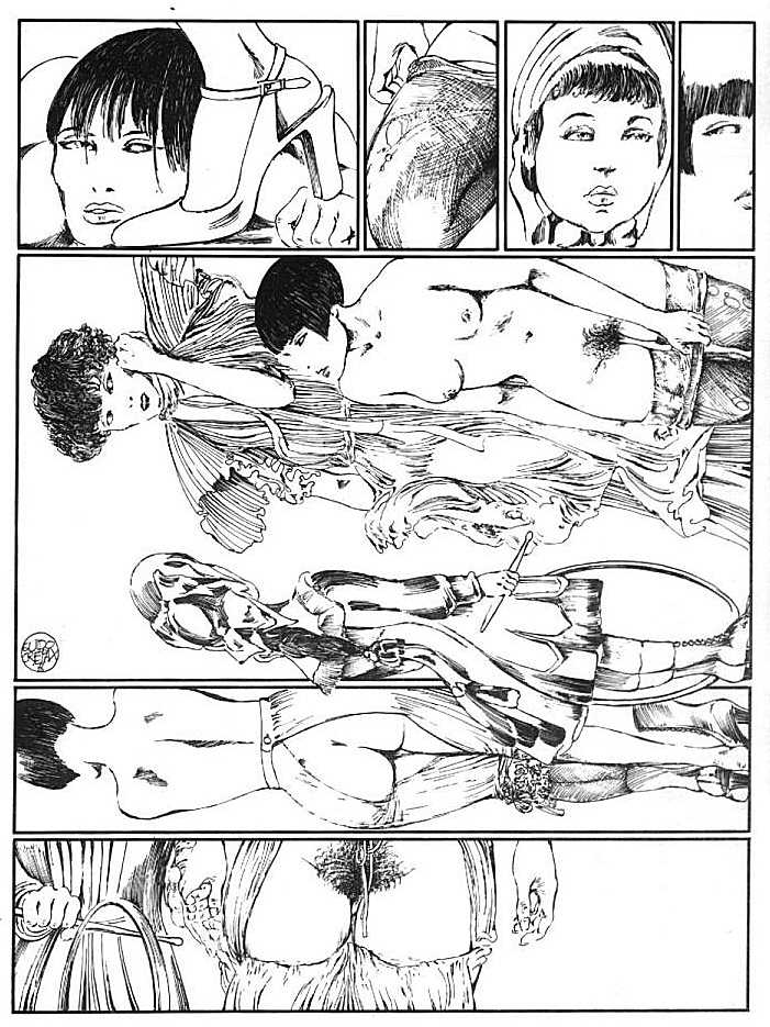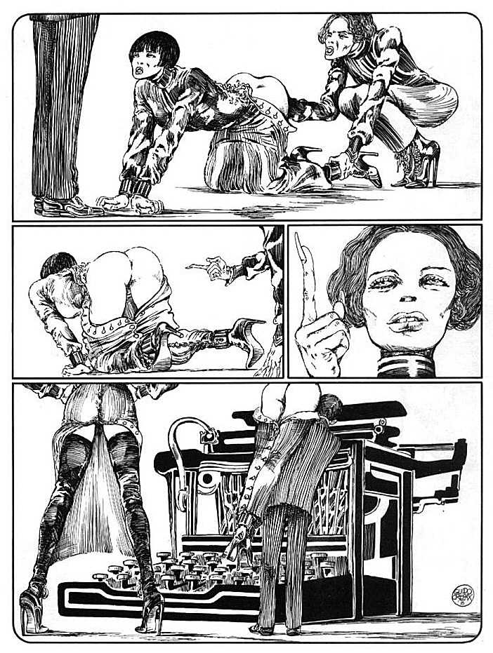 Beyond that, the wordless pages in which she encounters giant typewriters and motorbikes, space pilots and bears, leaves the ‘reader’ to make up their own interpretations to run alongside Valentina’s, which is probably precisely what Crepax intended. In Lanterna Magica Crepax takes us deep into the heart of his erotic, fetishistic fantasies, where physical gratification comes in every shape and size and absolutely anything goes.