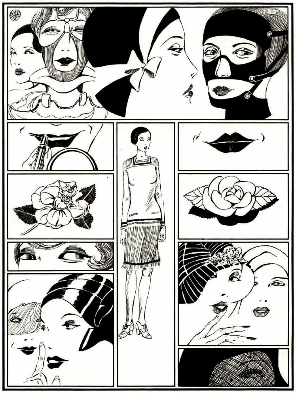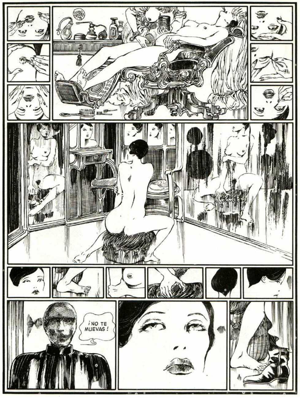 Crepax was commissioned to produce illustrations for a new edition of Histoire d’O by the Paris publisher Franco Maria Ricci Editore, and very much enjoyed the opportunity, researching historical settings and experimenting with exciting page layouts.