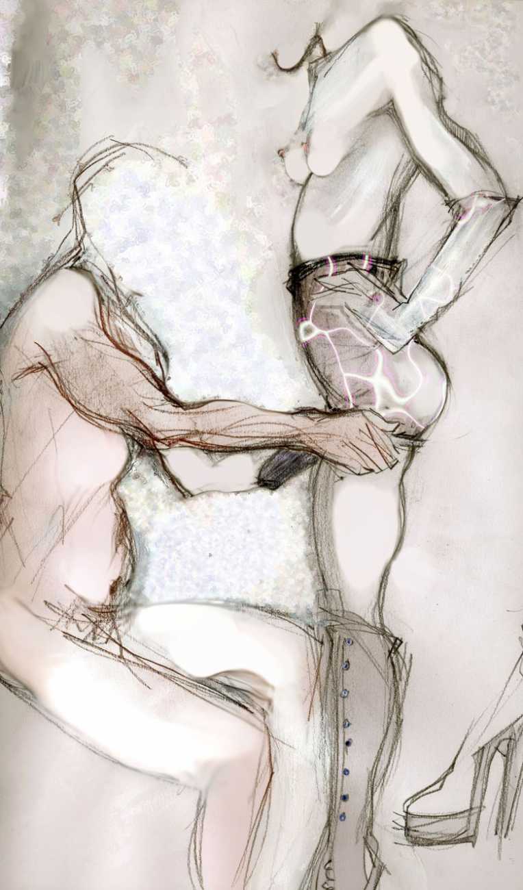 What I set out to do in my painting and drawing is to provide a message of acceptance and tolerance – no judgements. It is one of the hardest lessons for us all to absorb. In the end my work is about self-acceptance, that our bodies, minds and souls are to be honoured. Our needs, cravings, fetishes and sexuality are all parts of us; we need to share our feelings honestly, not hide them. If we hide them, we become criminals in our own minds. My focus is to show my audience that their feelings are far more normal than they probably realise, and to be accepting of who they are.’