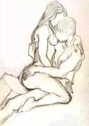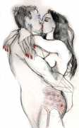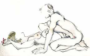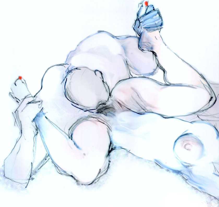 Carolyn writes: ‘My paintings are predominantly concerned with human sexuality. My perspective begins poetically with me alone. It extends out to the mood of my models, then to my drawing, my painting, and ultimately to the living spaces of my patrons. I am utterly and unashamedly ecumenical in my fascination with the human form and the imaginative capacity for loving of its inhabitants. As I’ve loosed my work onto the world, I have encountered, confronted, defended, befriended and been befriended, while creating a virtuous circle of inspiration that flows back to me in direct proportion to my evolving ability to tell the truth about how things really are, how people might express themselves if they were as free in the rest of their lives as they are in my work.