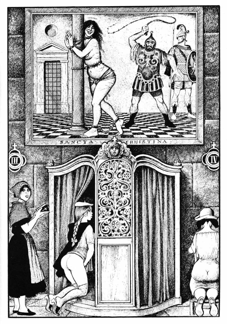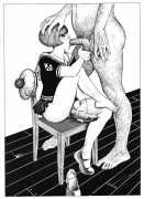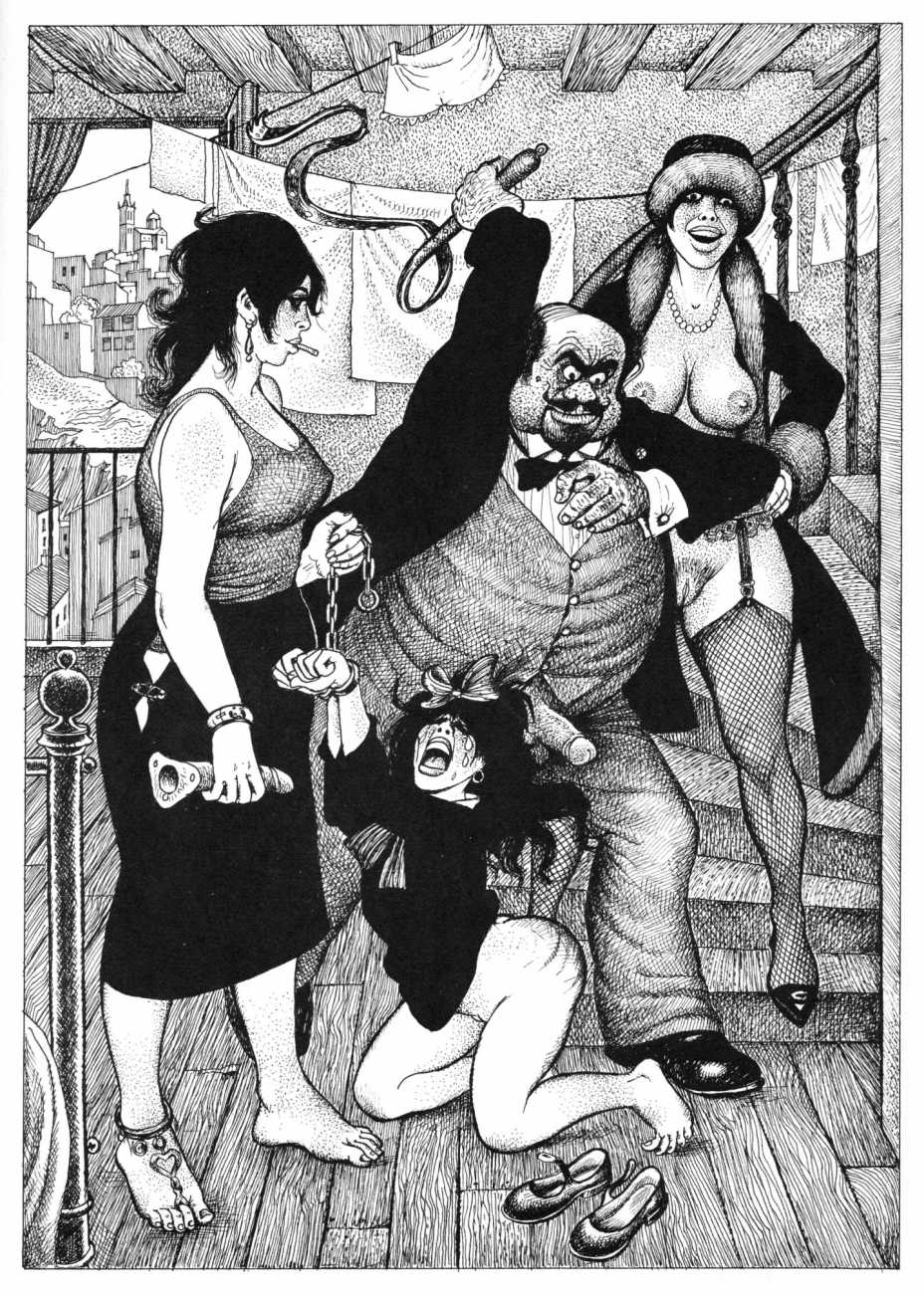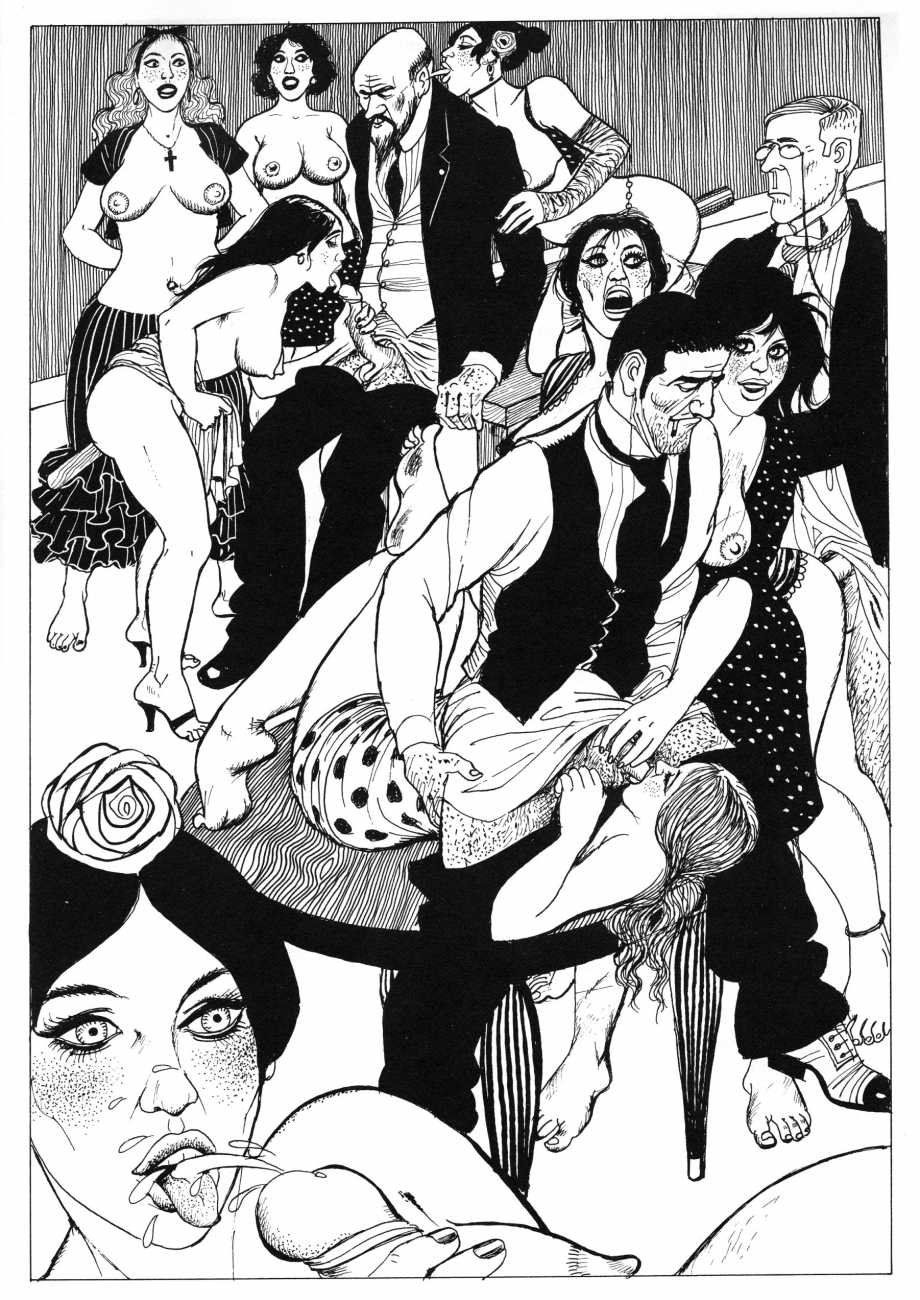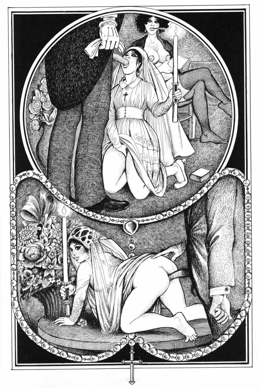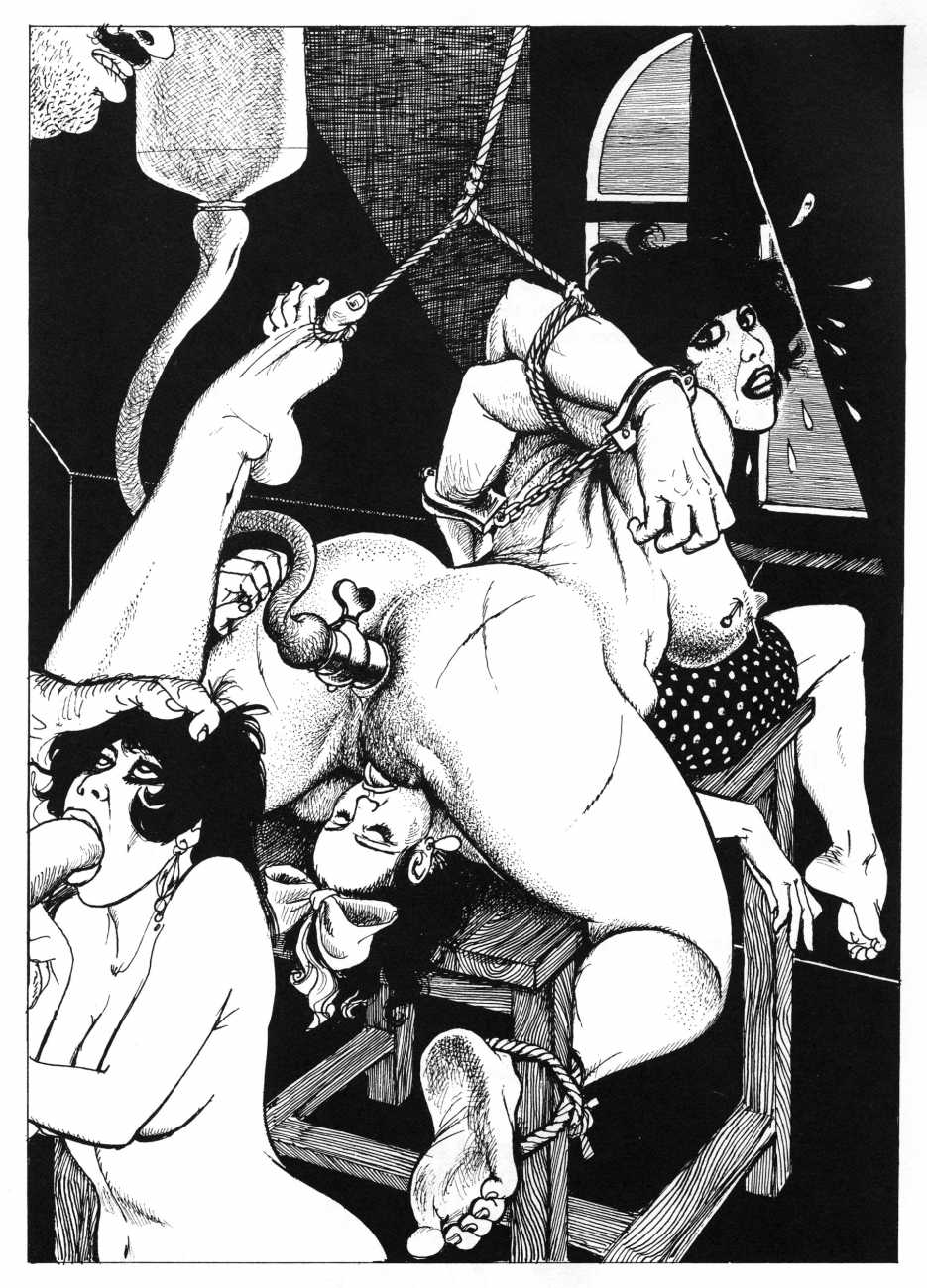 Pichard’s images take Louÿs’ transgressive text into the realms of transgressive illustration, leaving nothing to the imagination, especially the range of items which can be inserted into bodily orifices.
