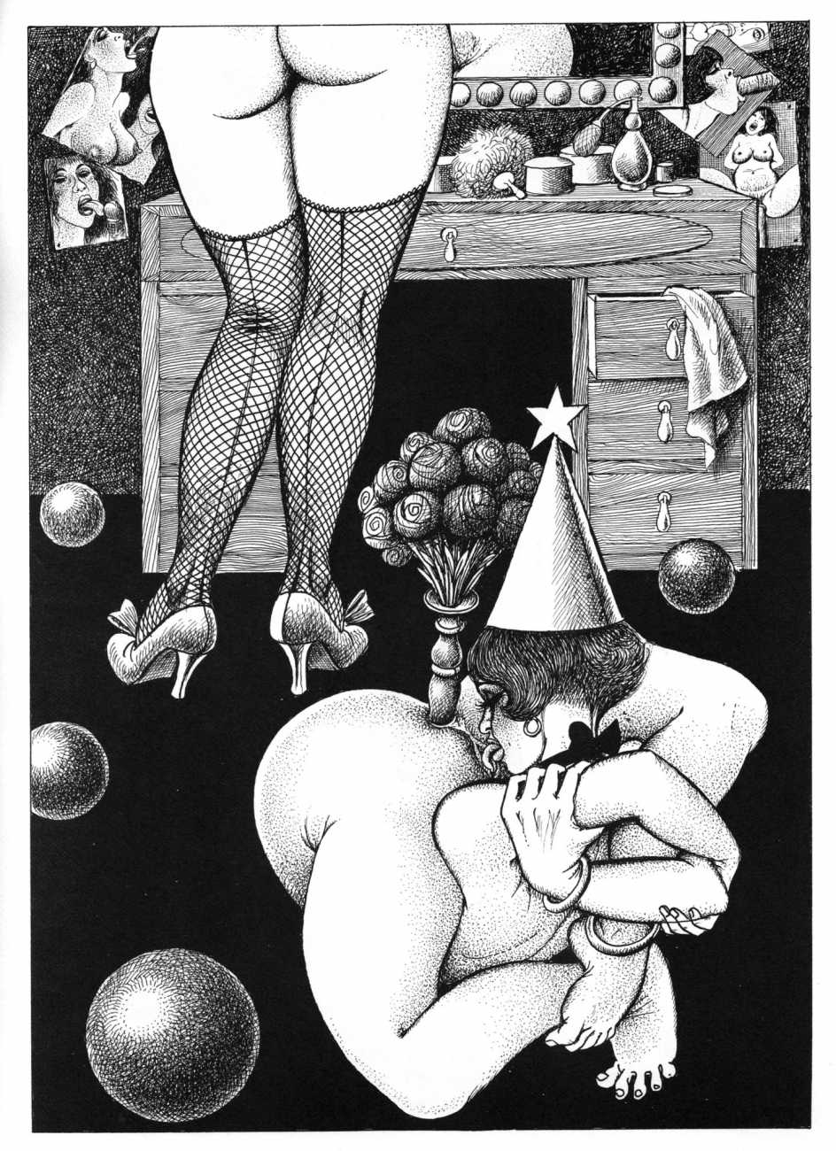 In 1983 a tiny French publisher working out of a village house in the small community of Servon in the Île-de-France commissioned Pichard to illustrate two erotic classics – Pierre Louÿs’ Trois filles de leur mère and the French translation of the anonymous German Aus de Memoiren einer Sängerin (Memoirs of an Opera Singer). They were the only two books ever published by Jean Antoine, but contained some of Pichard’s best work.